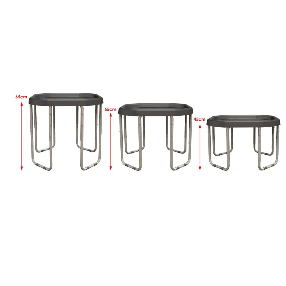 Adjustable Bracket for Mini Tuff Tray Choose this Adjustable Mini Tuff Tray for Messy Play to create spaces and activity corners in any space, indoor and outdoor. You can set it to 3 different heights: 45cm, 55cm and 65cm depending on the age and height of the children. Ideal for indoor and outdoor use. Ideal for Messy Play : Messy (or Sensory) Play, that is, the sensory game that soils, is the game during which, children of all abilities and ages. With materials necessary to all senses. With their natural curiosity and drive, they explore freely and experiment in a safe environment. In their own way and in their own time, and guided by themselves alone. This kind of play, of course, is not something new, we adults did not discover it, it is the natural way of play of children, who always wanted and sought to play with all their senses, with soil, mud, clay, and so many other materials of nature that were generously around them. Precisely because all the senses work, the child’s brain receives sensory stimuli necessary for its complete development. As the child dips his hand into his fruit cream, paints his whole body with colors or crumples in any water puddle he finds in his way, the sensory receptors of the skin, combined with the rest of the senses, compose a complete picture, which allows the brain to gradually create a more complete sense of self and the world around it. This game, of course, often leads to what we see as “chaos”, but this chaos is the result of children’s quests and if we knew what opportunities we deprive them, we would understand how unfair it is not to allow it, not to encourage it, not to cause it…! Technical Specifications Frame: