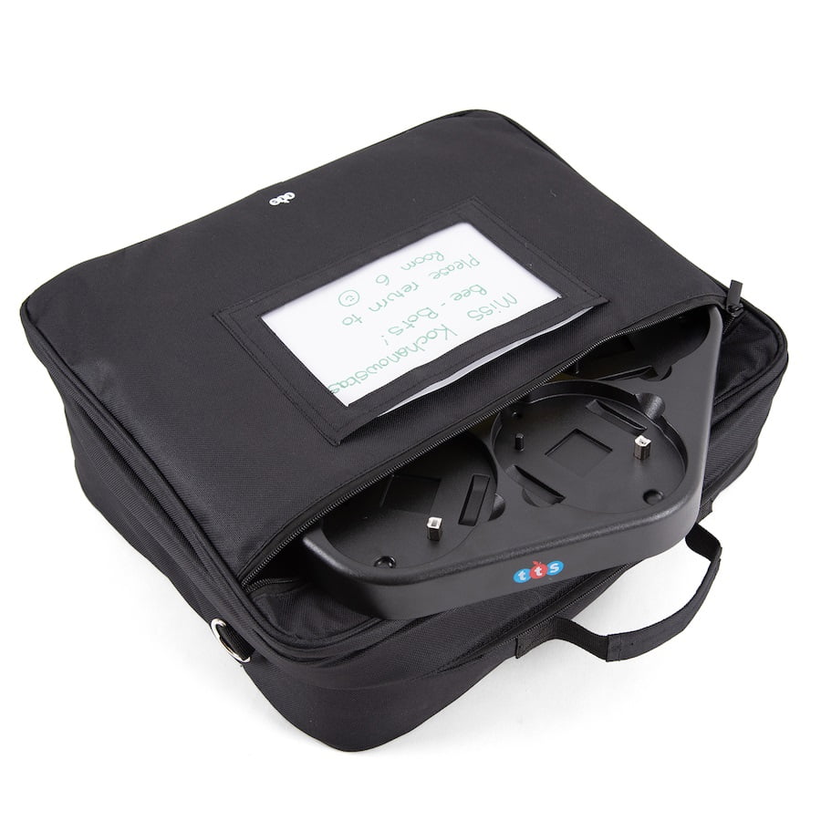 The bag can be carried by either the grab handle or detachable shoulder strap. A clear pocket on the front allows for the easy identification of your class set.