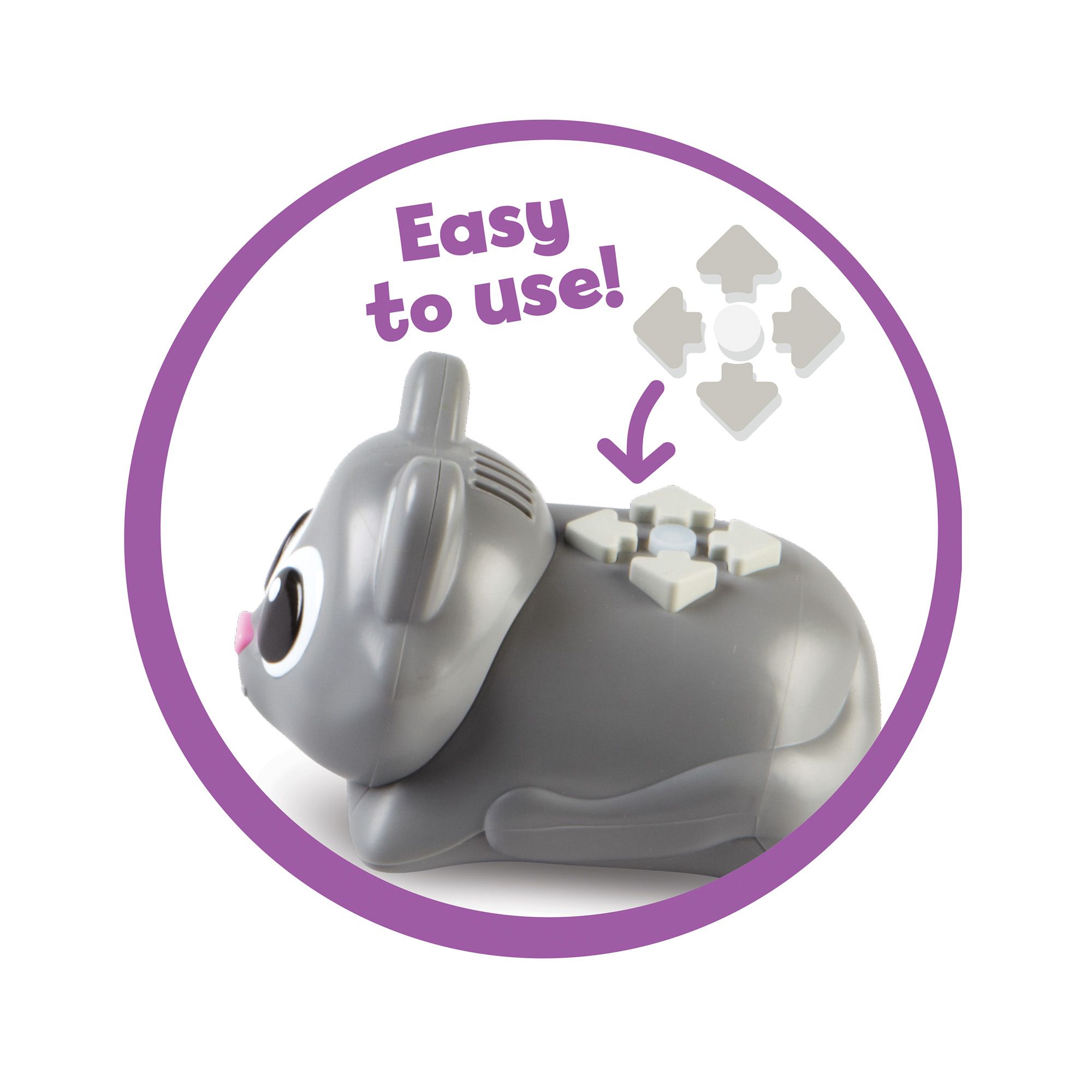 - Press Scamper’s nose to activate Play Mode, where you can feed, pet, and take care of your new kitten coding robot toy.