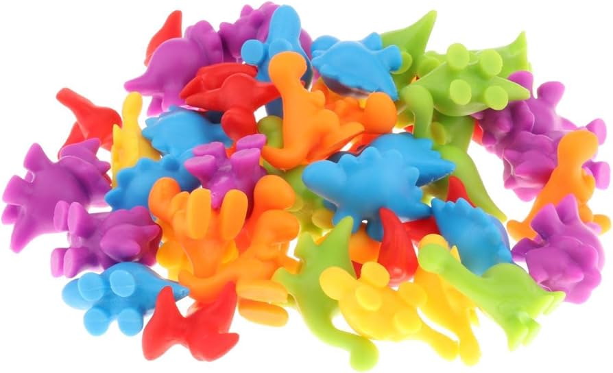 Educational set of counting – sorting games with colorful dinosaurs in a variety of colors.