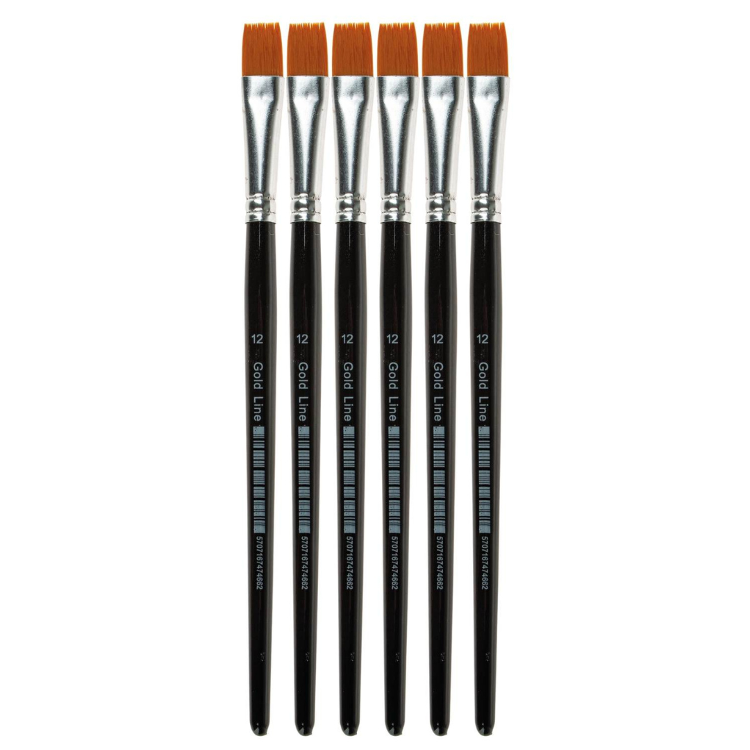 Gold Line Brush Flat Size 12, 6 Pcs Gold line brush – flat brush gold-colored nylon hair, seamless ferrule, 6 flat brushes in sizes 12, 6 Pieces