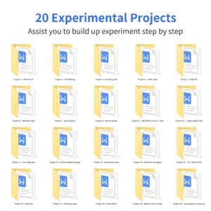 As many as 20 project tutorials are provided, which contain detailed wiring diagrams, component knowledge, test code, and so on. In addition, you can master the use of electronics, physics, science and programming by building up experiment with this kit.