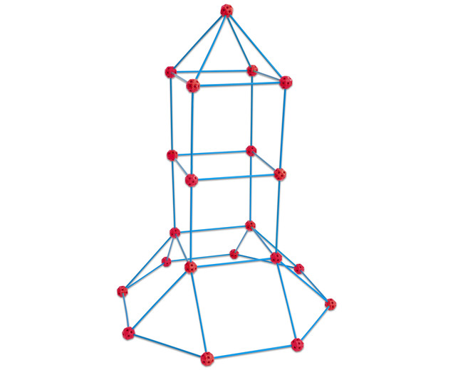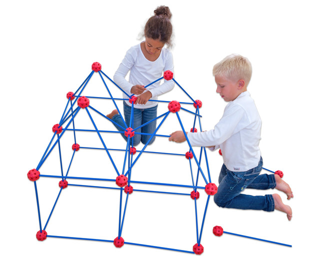 Bringing geometry to life Observe from the outside or crawl in and marvel from the inside: Geometry is experienced from all sides. In addition, your students learn about the properties of geometric bodies. With this set, almost all geometric bodies can be discovered: cubes, cuboids, pyramids and many more. Terms such as edge, side, base, height or diagonal can be easily explained and discovered from all sides. The large models appeal to children, encourage them to actively participate and are very easy to assemble: Simply insert the rods into the ball connections and assemble them into ever new constructions . scope of delivery   77 pieces: – 49 bars – 28 balls