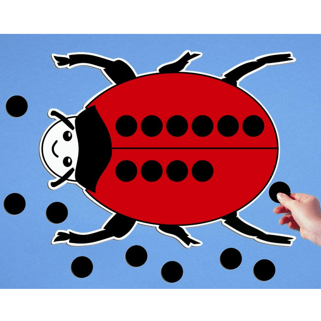 Brightly coloured giant magnetic vinyl ladybird and set of 20 magnetic vinyl spots.