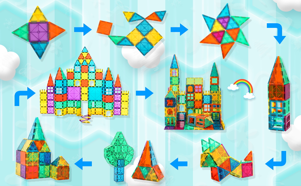 - Our large Big magnetic Building multi-colored tiles encourage hands on exploration and Construction.