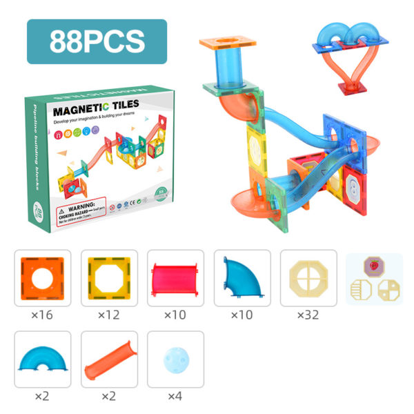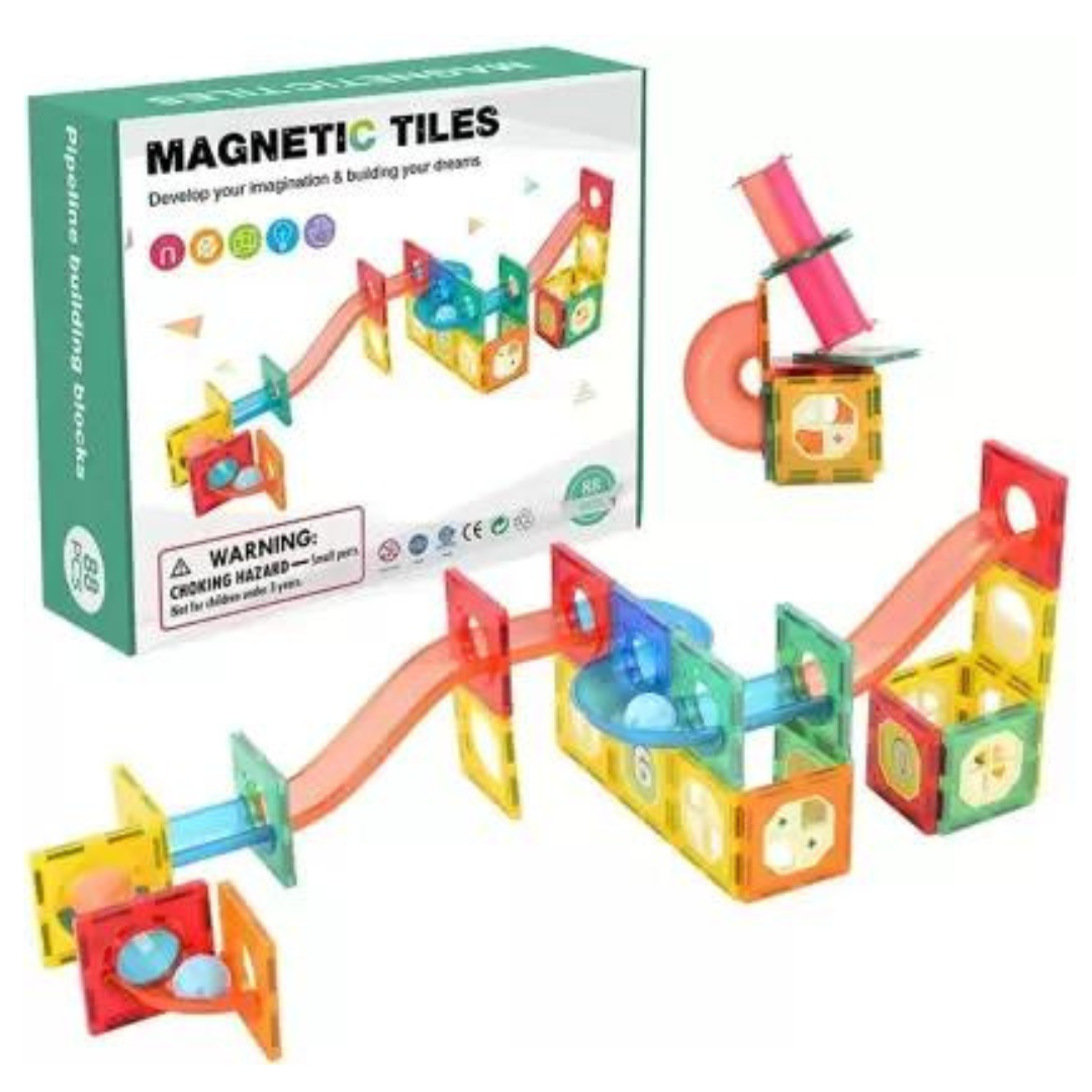 Magnetic Tiles Pipe Building Blocks Set (3D) – Marble Run 88pcs