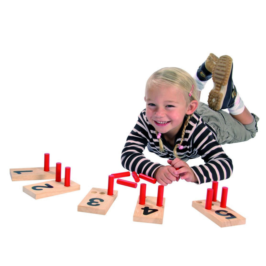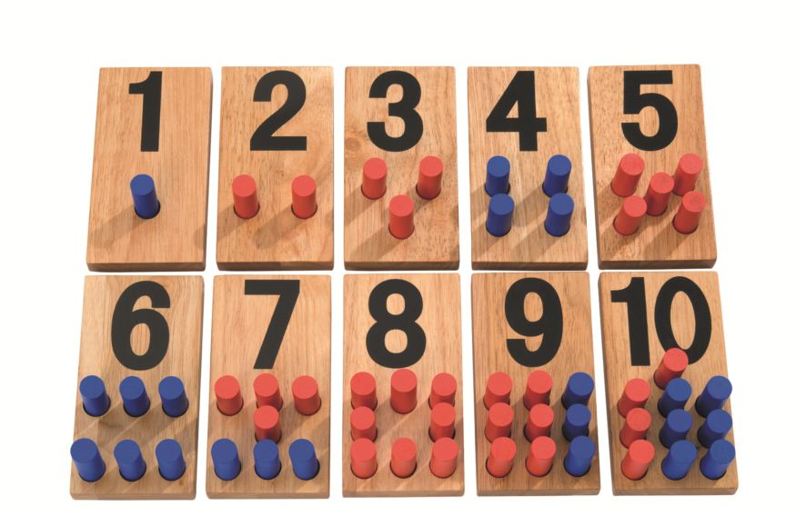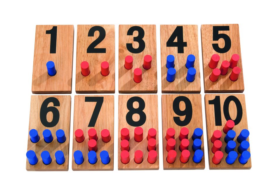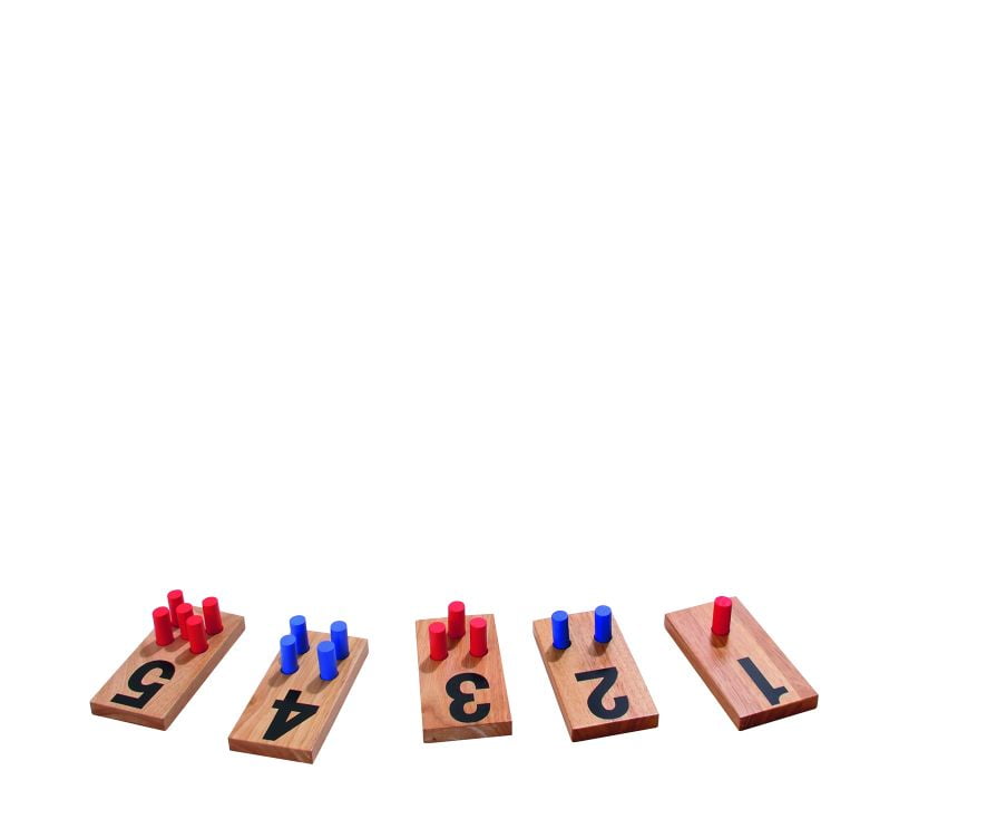 Just put the red sticks in the holes of the number boards.