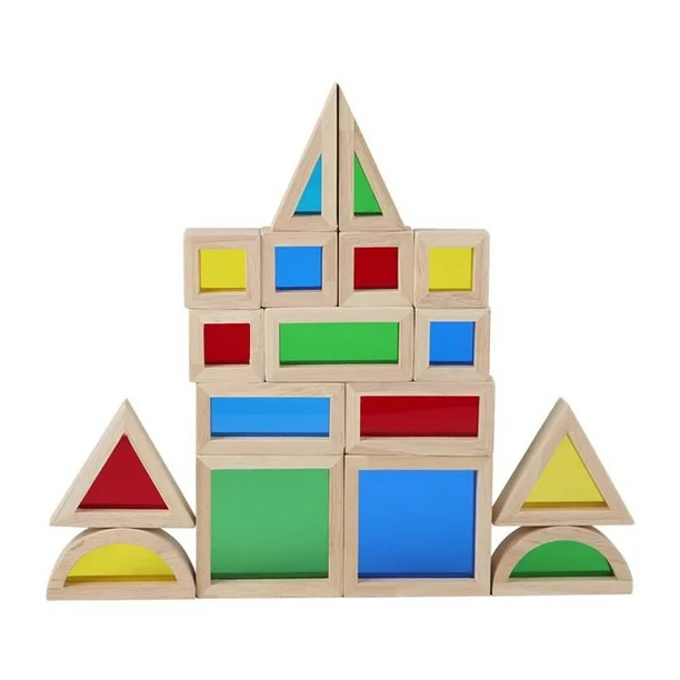 [WOOD BUILDING BLOCKS SET]: 17 building blocks of different colors and shapes, children can stack or sort these wooden blocks, very interesting.