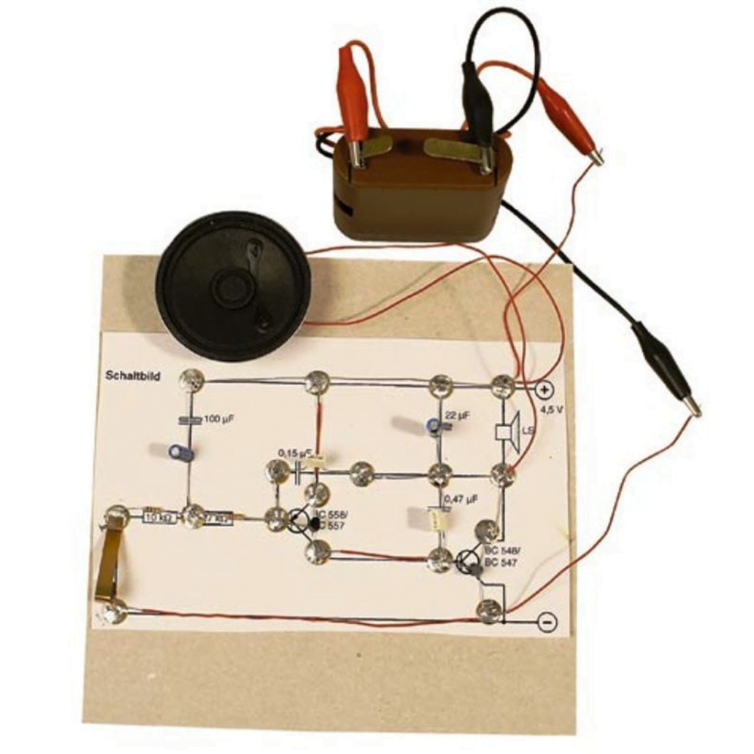 Sirine The electronic switches produce the classic tone of the siren. Need battery 4.5 V. The electronic packages have pre-printed “and pierced-boards” boards “. The circuits are already ready for immediate use. This ensures the success of the experiment by students even if they are beginners. The bolts and their associated electronics with spikes to prevent problems from any cold solder or failures and also there is special protection against short circuits. These reasons make them suitable and easy to use for students who have no experience in electronics. Other advantages of circuits is: