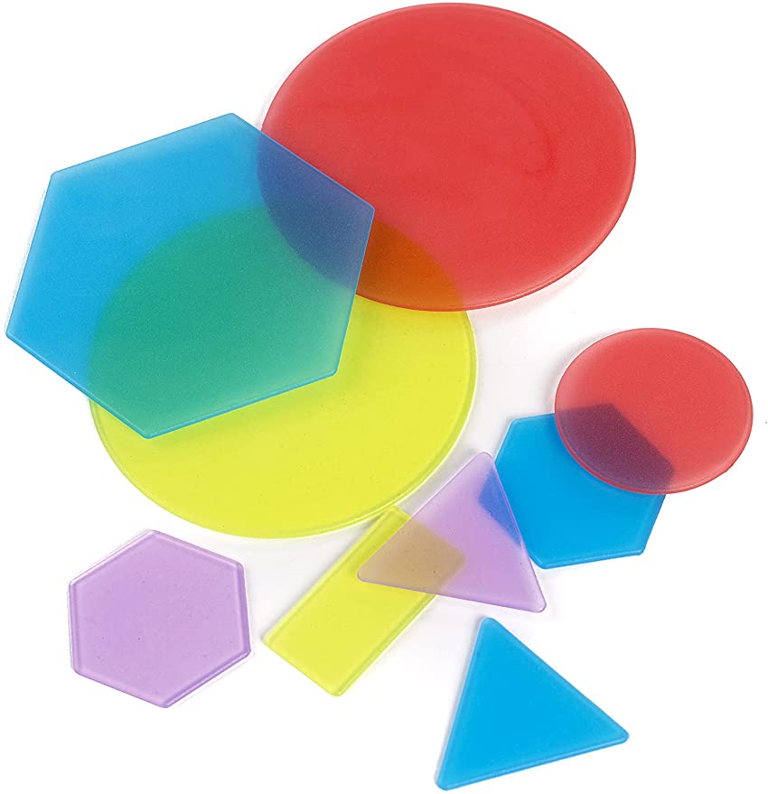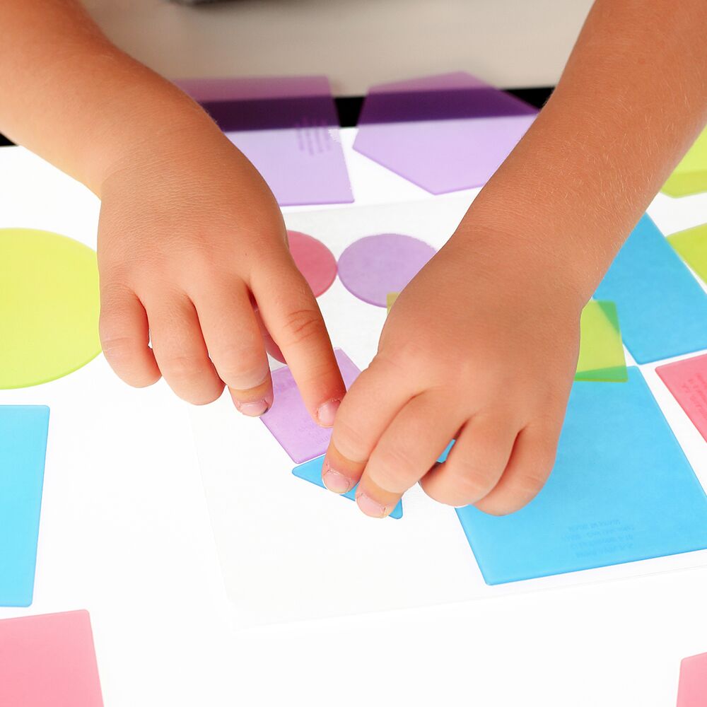 Translucent Geometry Shapes This set of 40 geometric shapes made of translucent plastic allows boys and girls to experiment and discover shapes, sizes, colors and patterns; which will help them to become familiar with the world of geometry from a very young age. This educational resource is suitable for night tables and is accompanied by 8 transparent activity cards with increasing difficulty level and an explanatory brochure with game proposals.