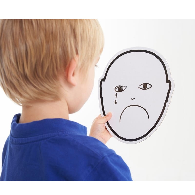 size of faces: 210 x 185mm. 13 expression faces, 3 mirror faces, 3 white dry-wipe faces, 3 clear acetate faces, teachers’ guide and A3 poster.