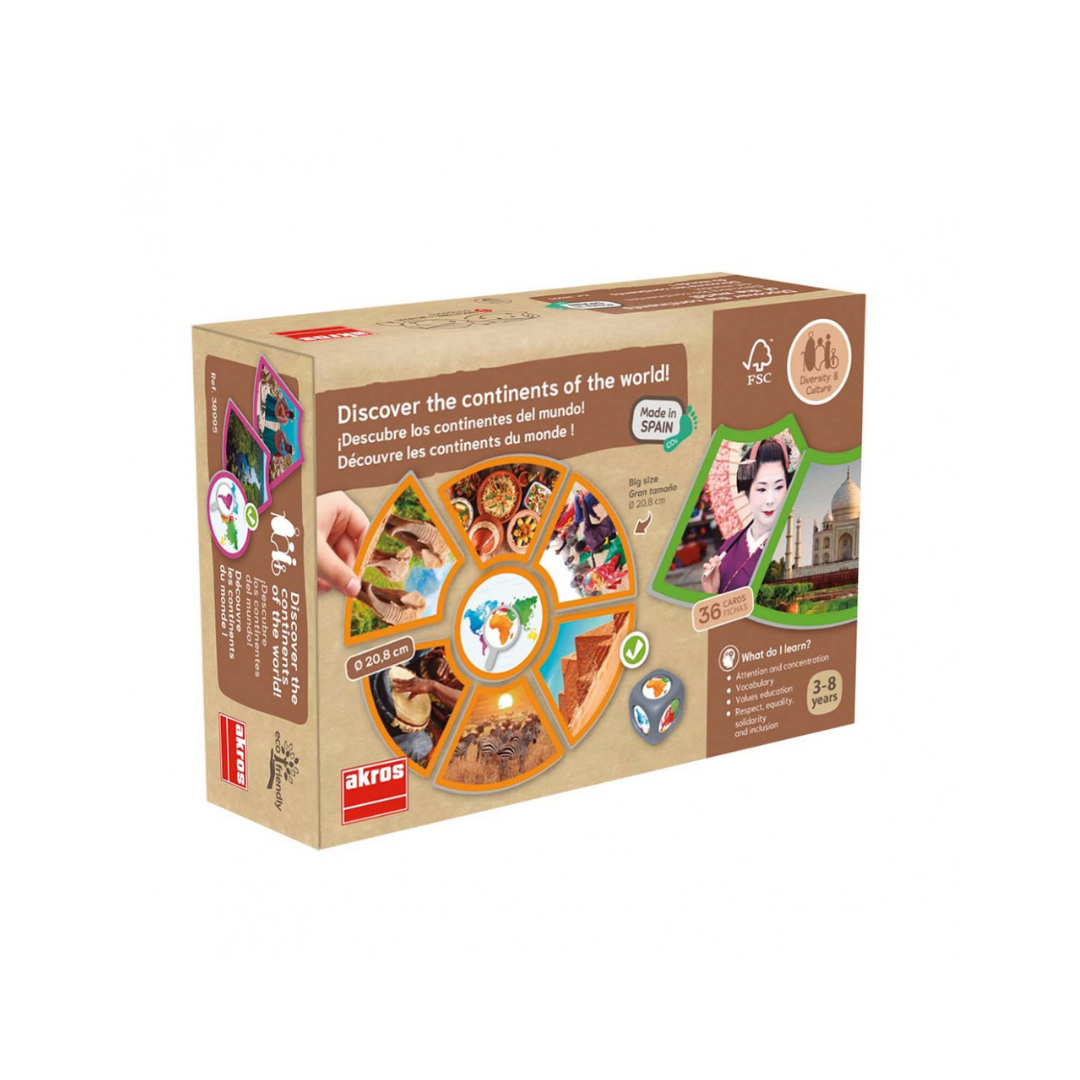 Ανακαλύψτε μαζί με τα παιδιά τις Ηπείρους του πλανήτη μας και τις ιδιαιτερότητές τους. Αυτό το παιχνίδι αντιστοίχισης είναι το κατάλληλο εργαλείο για να ταξιδέψετε στις ηπείρους και να εξοικειωθείτε με τη γεωγραφική τους θέση και να ανακαλύψετε τη μεγάλη ποικιλία τοπίων, παραδόσεων και πολιτισμών που υπάρχουν στον σημερινό κόσμο χρησιμοποιώντας πραγματικές εικόνες. Κάθε ήπειρος έχει ένα διαφορετικό χρωματιστό πλαίσιο που σας επιτρέπει εύκολα να τη συσχετίσετε με τις κάρτες της.