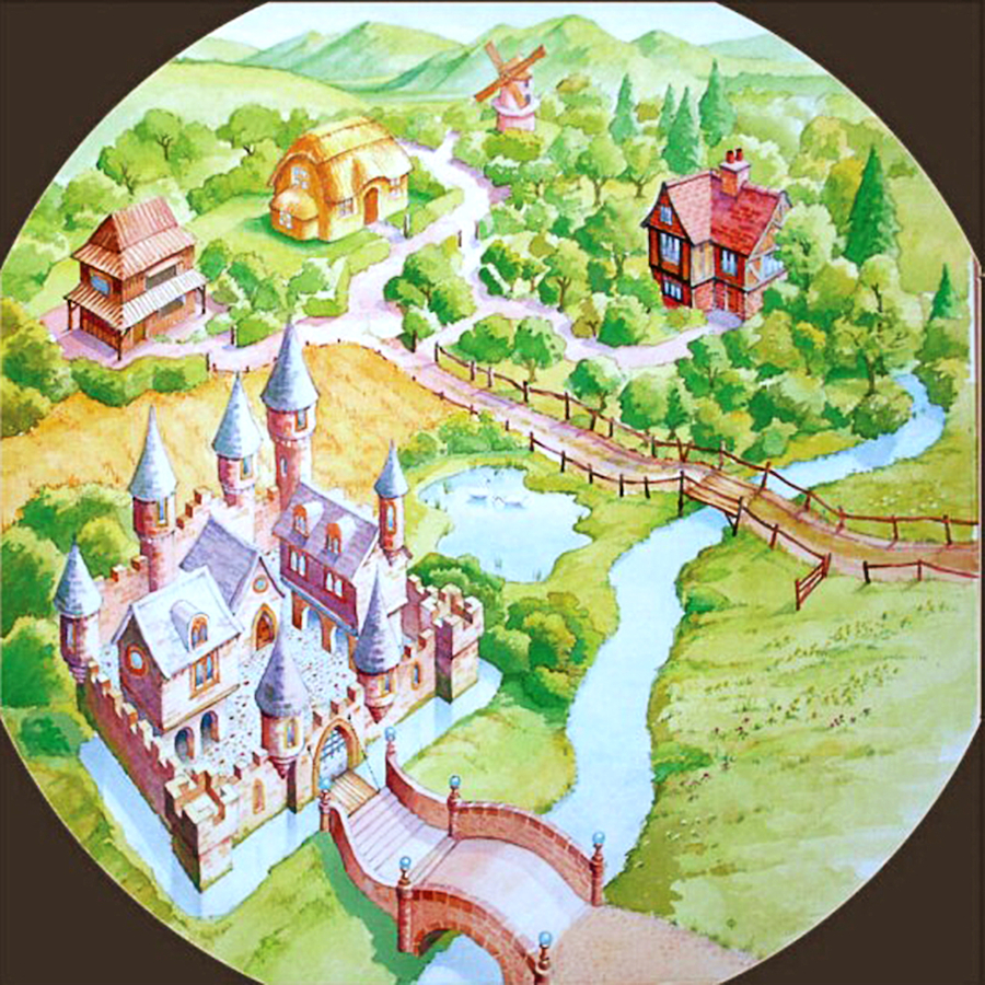 Μία όμορφα σχεδιασμένη Επιφάνεια Δραστηριοτήτων με θέμα “Παραμύθια”, κατάλληλο για χρήση με τον Πλαστικό Δίσκο Δραστηριοτήτων.