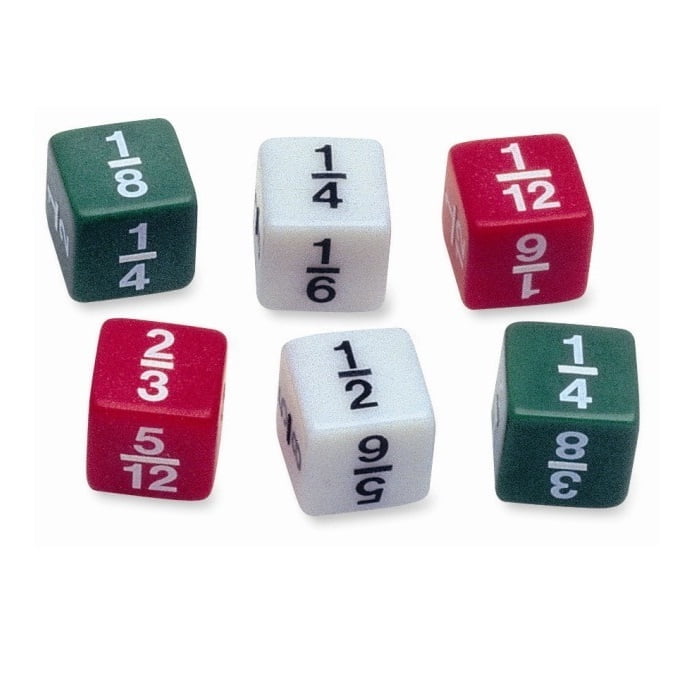 Ένα σετ με έξι (6) Ζάρια Κλάσματα με τα οποία οι μαθητές κατανοούν τα κλάσματα και τις ισοδυναμίες τους.