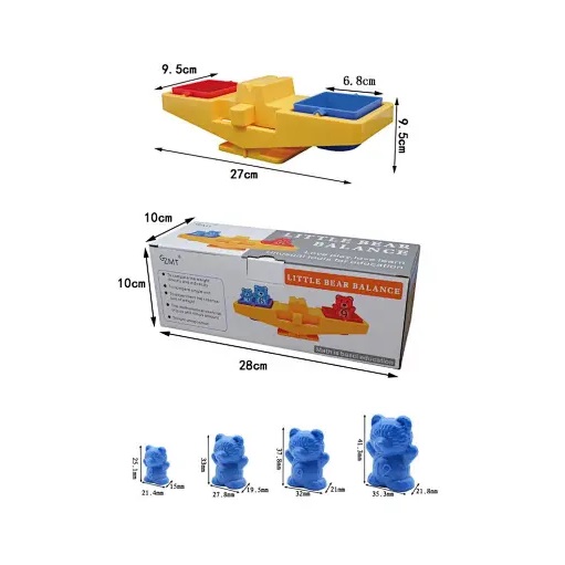Βοηθήστε τα παιδιά να κατανοήσουν απλές έννοιες των μαθηματικών ταξινομώντας και παίζοντας με τα αρκουδάκια!- Το παιχνίδι συνοδεύεται από πολύχρωμες πλαστικές αρκούδες που μπορούν να ζυγιστούν και να μετρηθούν, βοηθώντας τα παιδιά να αναπτύξουν τις δεξιότητές τους στο μέτρημα και τη διαλογή.