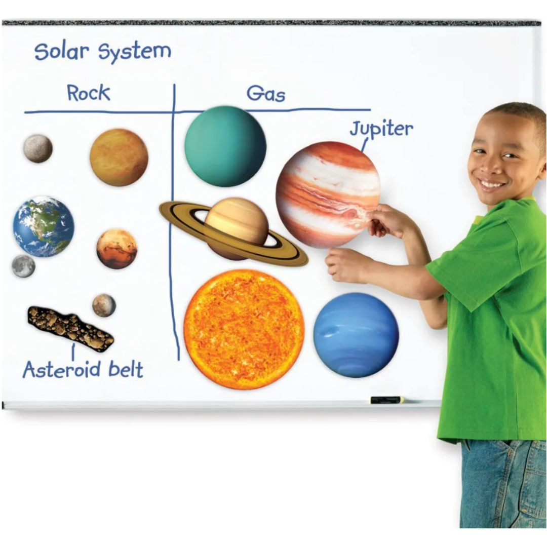 Οι έγχρωμοι, ρεαλιστικά λεπτομερείς μαγνήτες τραβούν την προσοχή των μαθητών, καθώς μοντελοποιείτε τις έννοιες της επιστήμης του διαστήματος στον πίνακα σας.