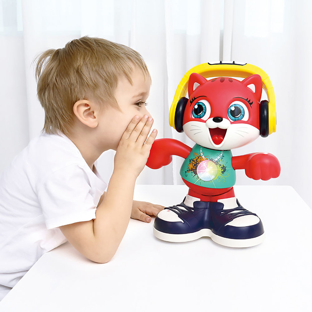 Ένα υπέροχο πολύχρωμο, φωτεινό γατάκι που θα κρατήσει πολλές ώρες συντροφιάς στο παιδί σας! Ενεργοποιώντας την, η γάτα θα αρχίσει να κινείται, να χορεύει και να κουνάει τα χέρια, τους γοφούς και το κεφάλι της με την αστεία μουσική που παίζει και το απαλό φως που φωτίζεται. Η μουσική και τα πολύχρωμα φώτα θα ξετρελάνουν το μωρό σας!