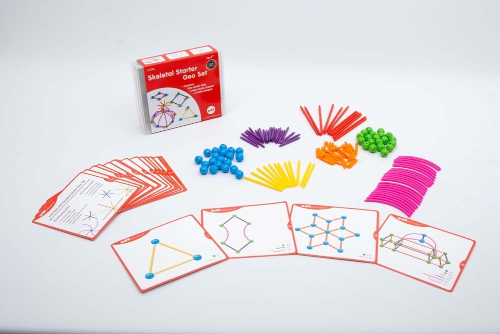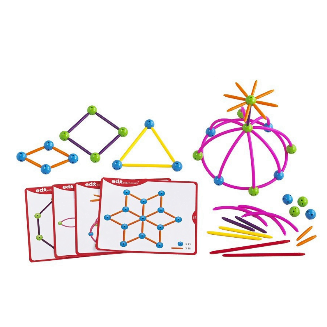 Με το σετ Κατασκευάζω Γεωμετρικά Σχήματα τα παιδιά θα βελτιώσουν ικανότητες όπως λεπτή κινητικότητα, την δημιουργικότητά τους και επίλυση προβλημάτων. Θα κατασκευάσουν διδιάστατες αλλά και τρισδιάστατες κατασκευές γεωμετρικών σχημάτων. Το σετ περιλαμβάνει:- 80 άξονες σε 4 διαστάσεις και 4 χρώματα