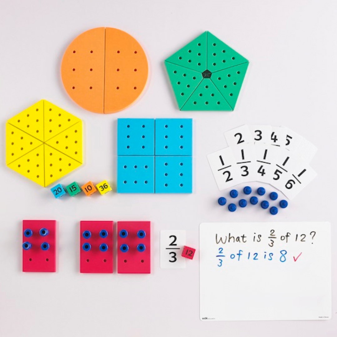 Με το σετ Κλάσματα Ποσοτήτων τα παιδιά μπορούν να βρουν το κλάσμα μιας δεδομένης ποσότητας για παράδειγμα 2/5 του 20.