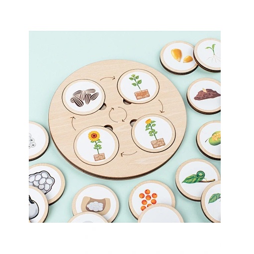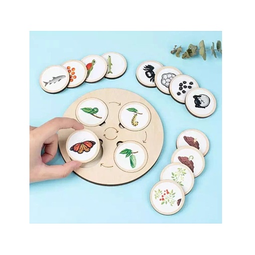 Ένα ξύλινο παζλ αναπαράστασης ζωής φυτών και ζώων της φύσης. Αυτό το παιχνίδι περιλαμβάνει τον κύκλο ζωής μιας πεταλούδας, τον κύκλο ζωής του κοινού βατράχου, κ.λπ.