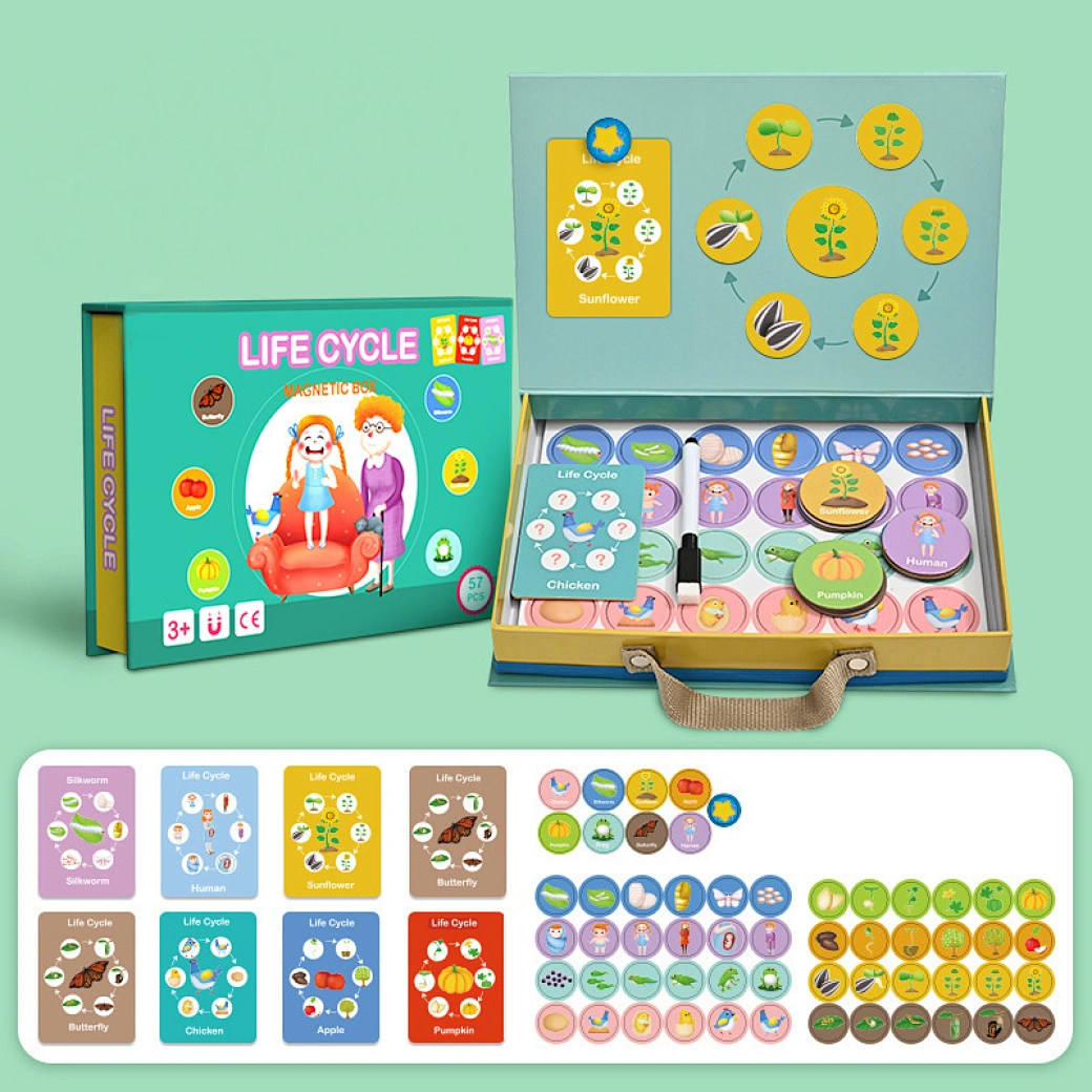 Ένα μαγνητικό παζλ επίδειξης κύκλων ζωής φυτών και ζώων