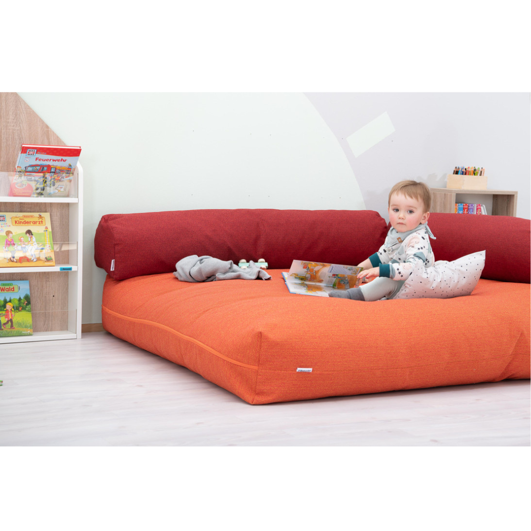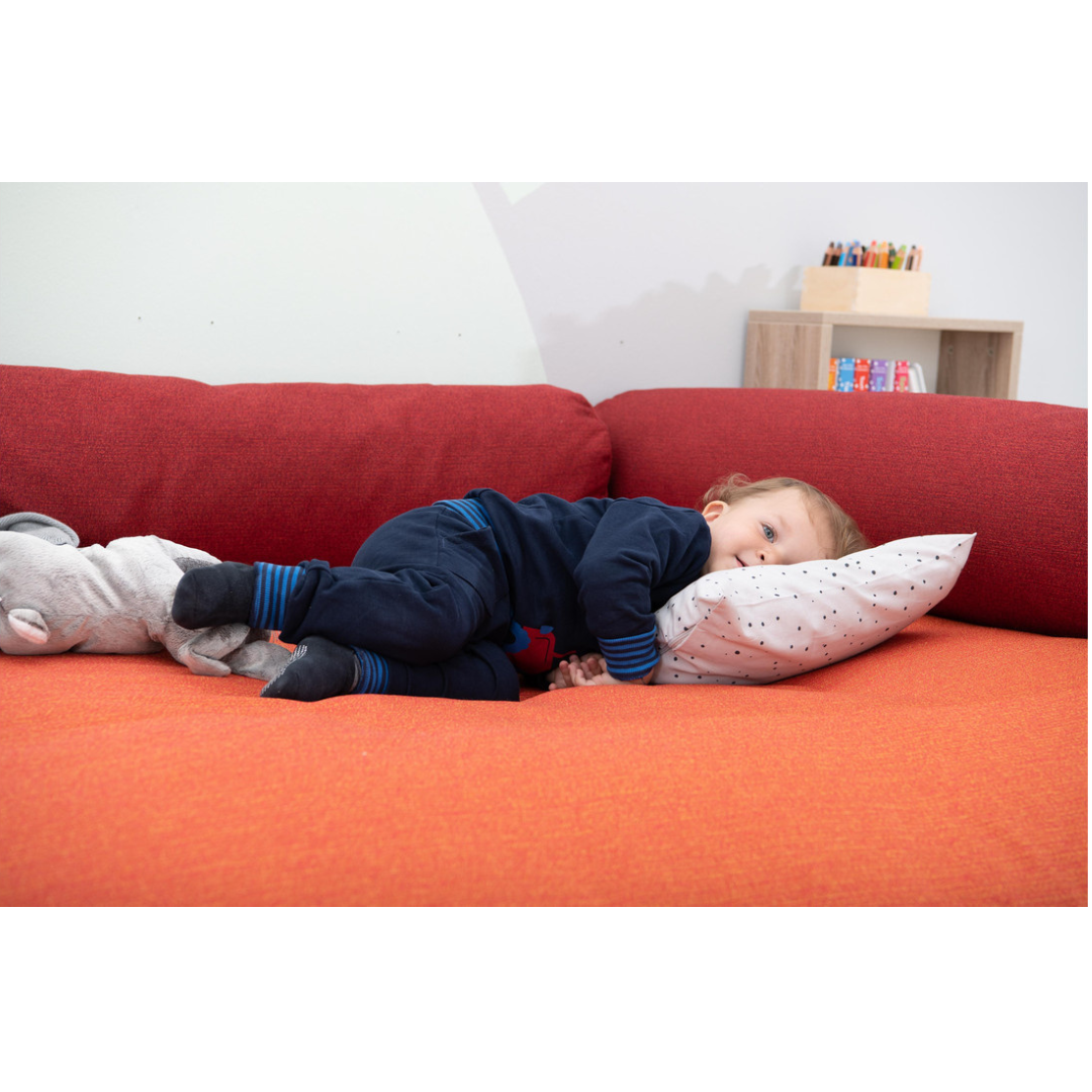 Υψηλής ποιότητας κατασκευή. Η γωνιά χαλάρωσης διατίθεται σε διάφορα χρώματα, ώστε να μπορείτε να σχεδιάσετε την αίθουσα χαλάρωσης ξεχωριστά σύμφωνα με τις ιδέες και τις επιθυμίες σας. Το καινοτόμο ύφασμα INKA χρησιμοποιείται ως κάλυμμα. Είναι ένα εξαιρετικά ανθεκτικό, υγιεινό και ποιοτικό ύφασμα. Το INKA είναι υφαντό ύφασμα και όχι τυπωμένο ύφασμα, πράγμα που σημαίνει υψηλή αντοχή χρώματος, χωρίς ξεθώριασμα και εξαιρετική αντοχή στη φθορά κατά τη χρήση. Τα καλύμματα είναι αφαιρούμενα και πλένονται στους 30 °C. Λόγω των μαλακών νιφάδων μέσα στο μαξιλάρι, η γωνία χαλάρωσης είναι ιδιαίτερα μαλακή και φιλόξενη. Οι θάλαμοι που διαθέτει αποτρέπουν την ολίσθηση των νιφάδων και έτσι διατηρούν βέλτιστα το σχήμα τους με μέγιστη άνεση. Τόσο το κάλυμμα όσο και ο πυρήνας αφρού είναι επιβραδυντικά φλόγας και εξασφαλίζουν ασφάλεια στο δωμάτιο χαλάρωσης.