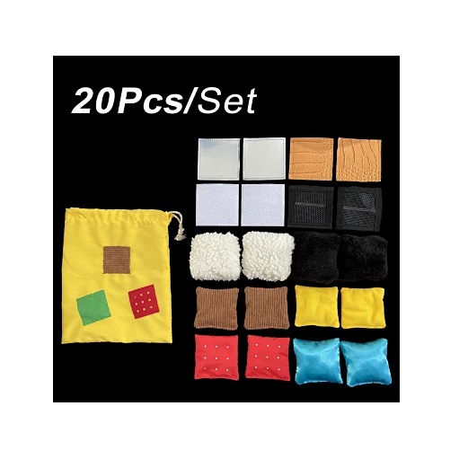 - Τα τετράγωνα μαξιλαράκια υφής με δυνατότητα αφής είναι ένα σύνολο 20 τετραγώνων με διαφορετικές απτικές επιφάνειες, συμπεριλαμβανομένων ανώμαλων, λείων, τραχιών και χνουδωτών υφών.
