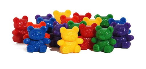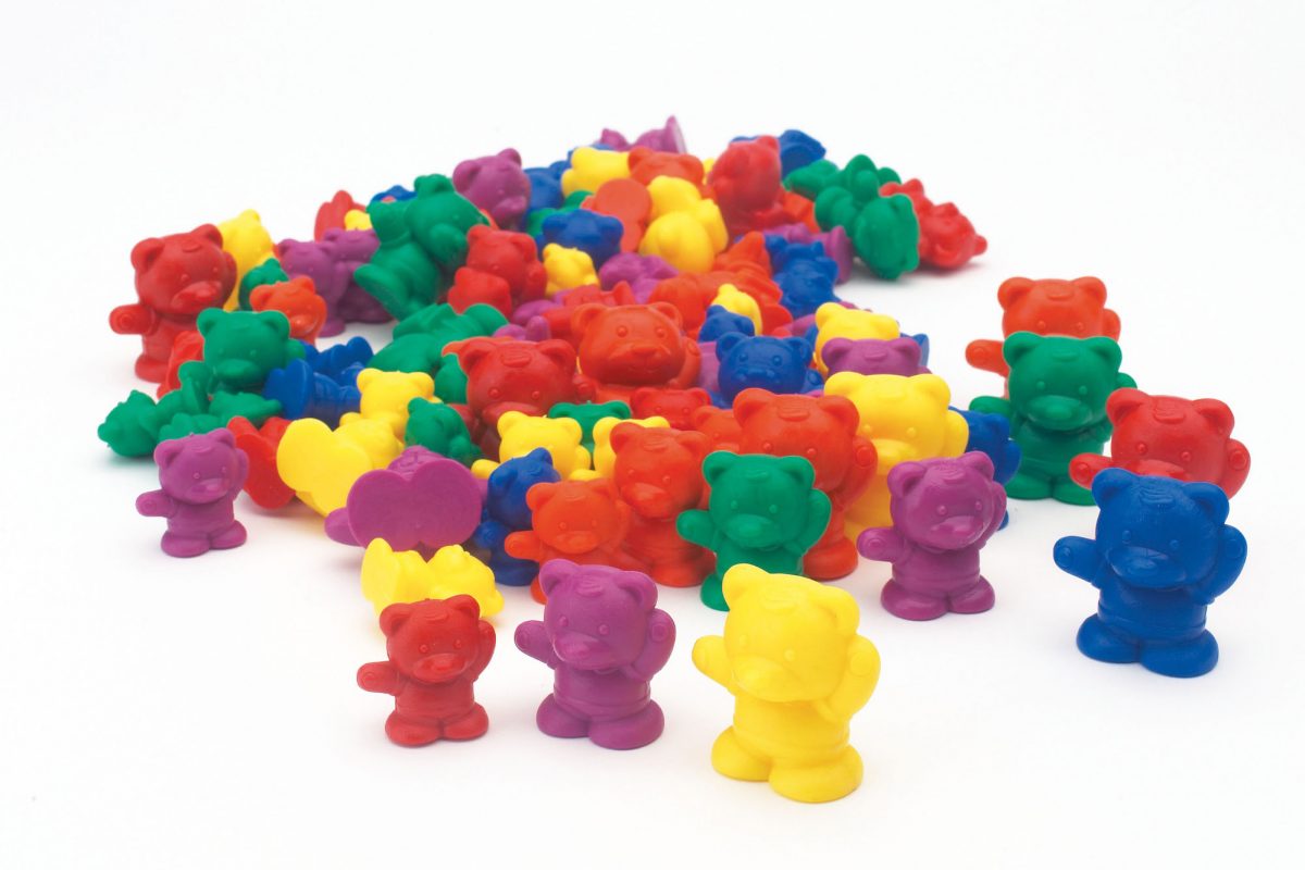 Το σετ περιλαμβάνει 96 αρκουδάκια καταμέτρησης σε 3 μεγέθη και 4 χρώματα. Τα αρκουδάκια ζυγίζουν μεταξύ 4 και 12 g.