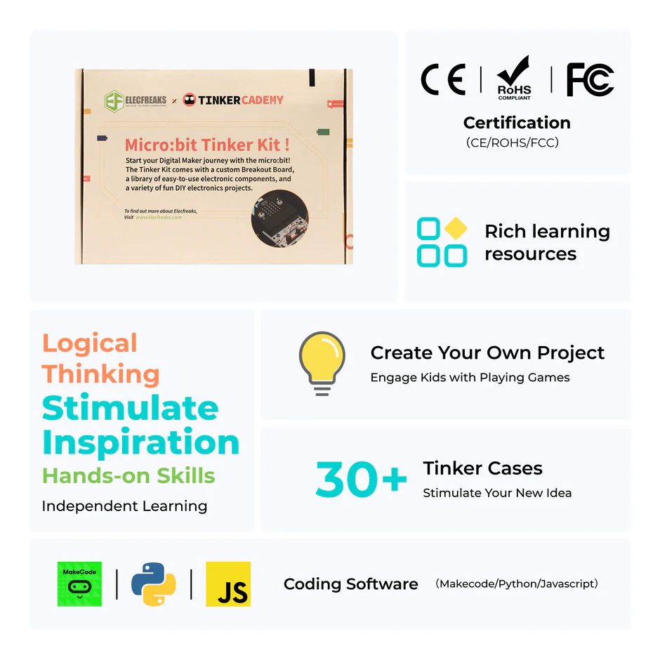 Το Smart Tinker Kit υποστηρίζει πολλαπλές μεθόδους προγραμματισμού (Makecode/Python/Javascript)