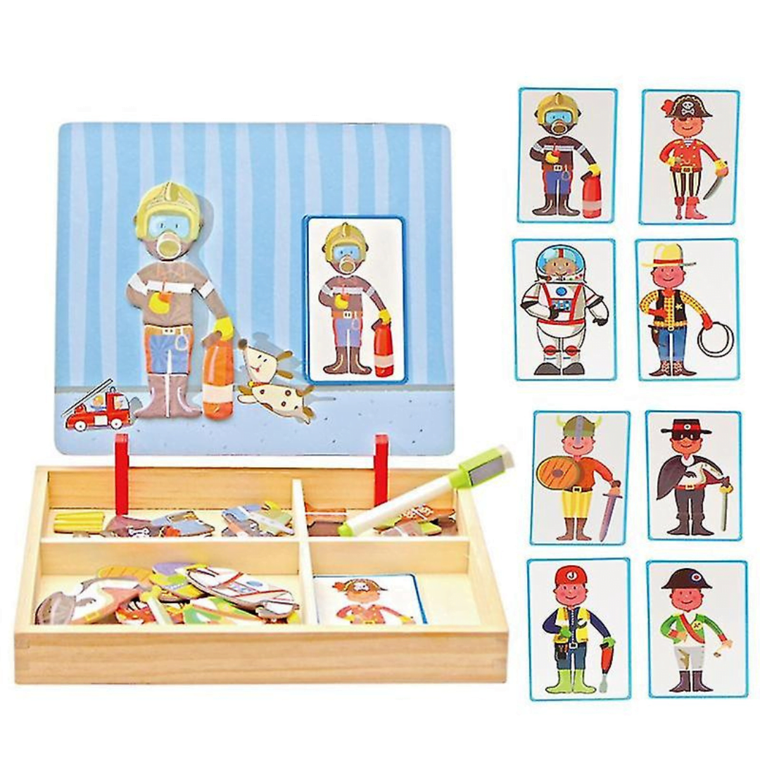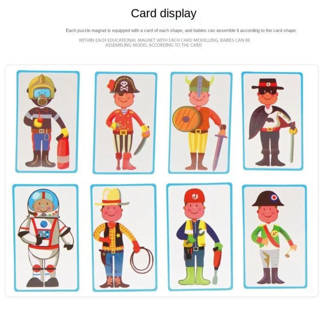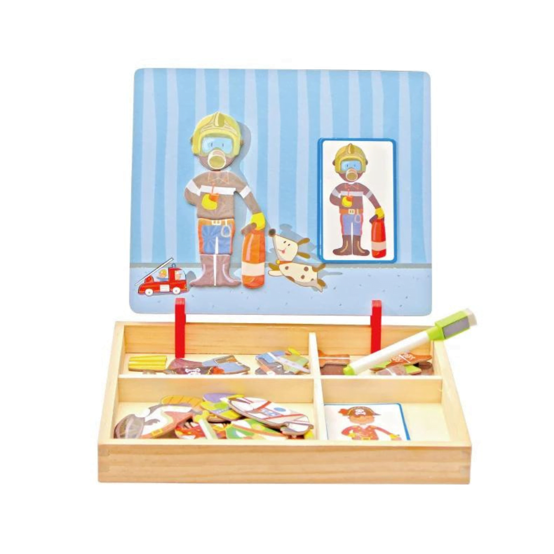 Ντύστε μαγνητικά τους πολλούς χαρακτήρες που περιλαμβάνονται καθώς μαθαίνετε τα επαγγέλματα και φανταστικούς χαρακτήρες! Ακόμη από την πίσω πλευρά μπορείτε να γράψετε και να ζωγραφίσετε!