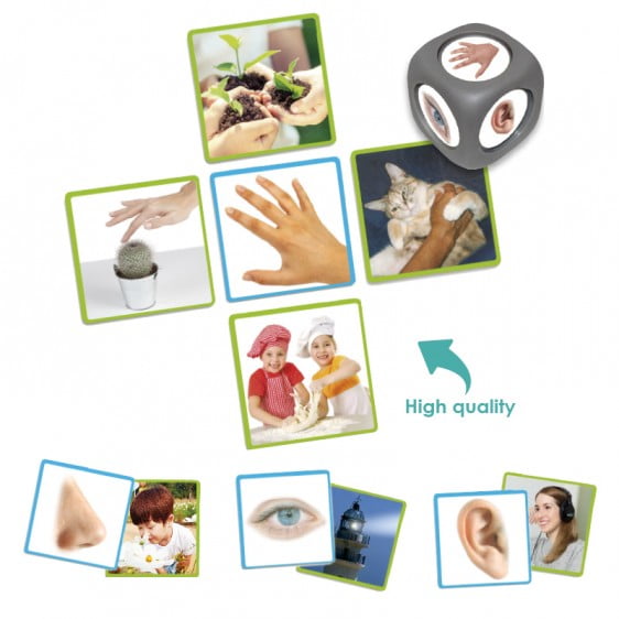 Διανέμονται ως εξής: 10 καρτέλες υπόδειγμα (εις διπλούν) με την φωτογραφία του κάθε ενός των πέντε οργάνων των αισθήσεων (πλαίσιο μπλε) και 40 καρτέλες με φωτογραφίες καταστάσεων αντίληψης που αντιπροσωπεύουν τις πέντε αισθήσεις στην ίδια την ζωή (πλαίσιο πράσινο).