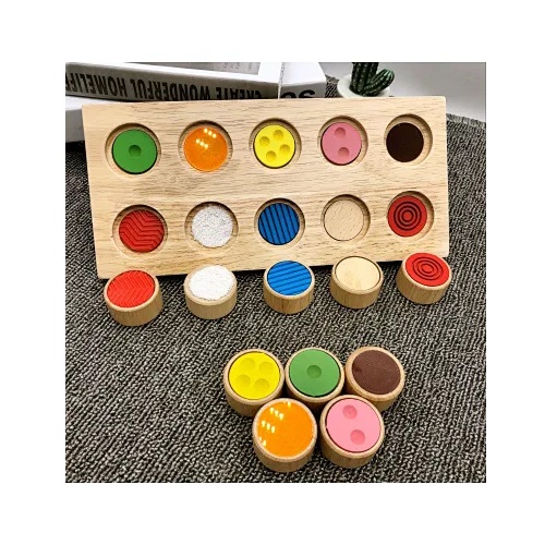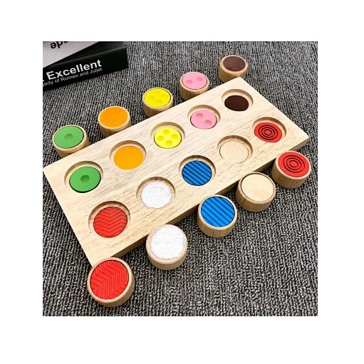 - Ο πίνακας διαθέτει 10 διαφορετικά υφάσματα με υφή, επιτρέποντας στα παιδιά να εξερευνήσουν και να βιώσουν διαφορετικές απτικές αισθήσεις.