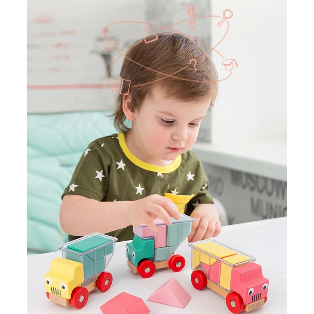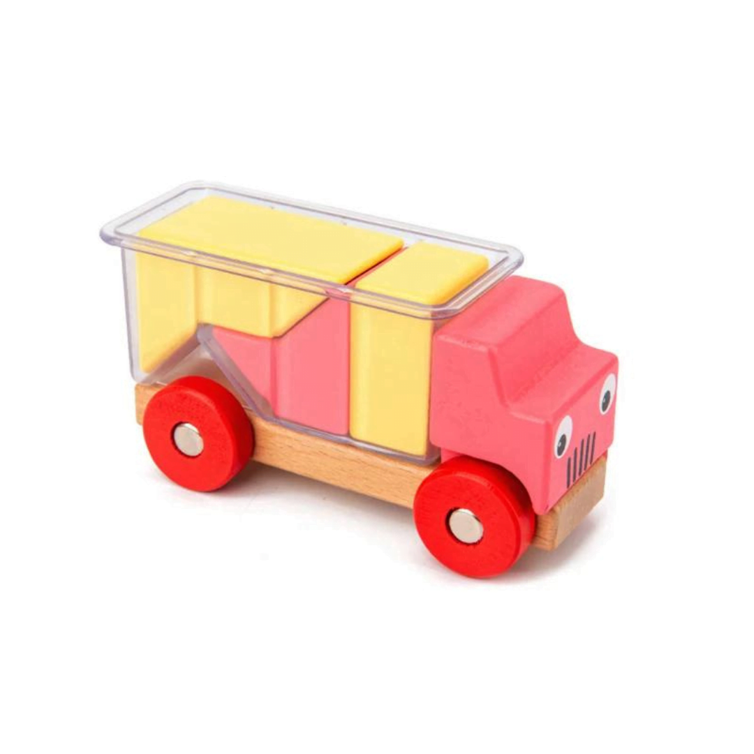 Ένα διασκεδαστικό παιχνίδι λογικής σκέψης τύπου tetris με σχήματα και φορτηγά για παιδιά από 2-3 ετών και άνω! Τα σχήματα θα πρέπει να είναι διατεταγμένα σε περιορισμένο χώρο, γεγονός που βοηθά στη βελτίωση της χωρικής συλλογιστικής και της κατανόησης των σχημάτων δισδιάστατων και τρισδιάστατων. Το παιχνίδι ενθαρρύνει επίσης τη λογική σκέψη – για να βρεθεί η λύση, το παιδί σας θα πρέπει να αναλύσει το σχήμα του δοχείου του οχήματος και να αποφασίσει σε ποια θέση και με ποια σειρά θα τακτοποιήσει τα σχήματα.