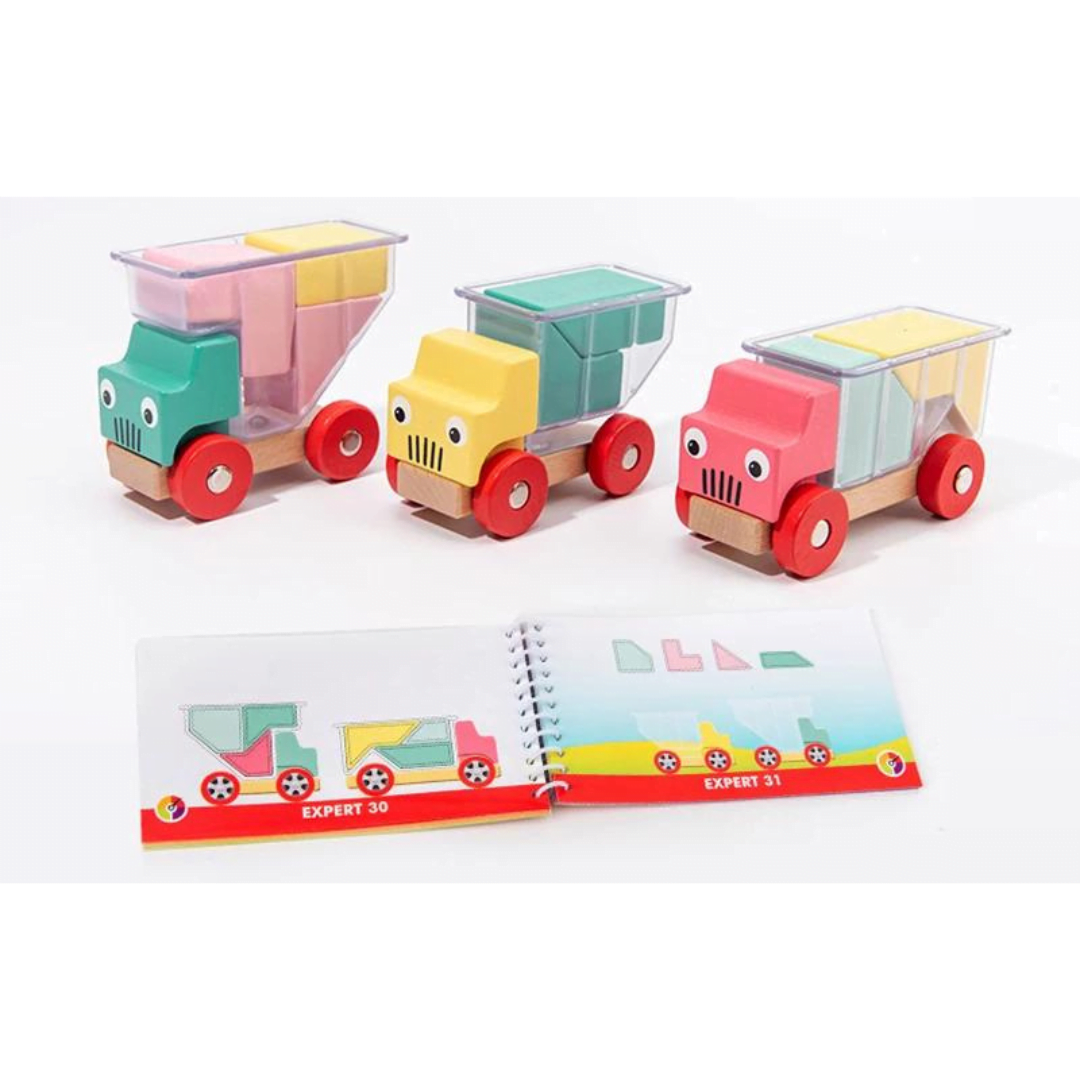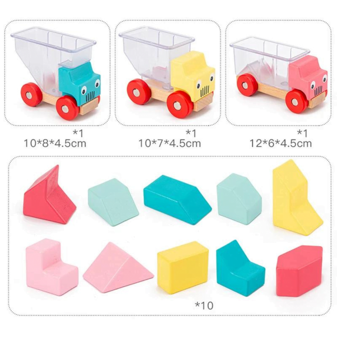 Παιχνίδι Λογικής Ξύλινα Φορτηγά και Σχήματα