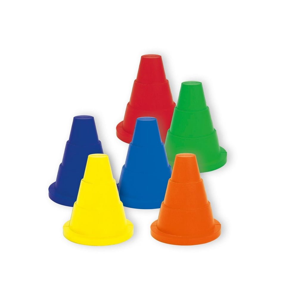 Το σετ αποτελείται από 6 κώνους φόαμ με χρώματα: κόκκινο, μπλε, κίτρινο, πράσινο, πορτοκαλί, μωβ