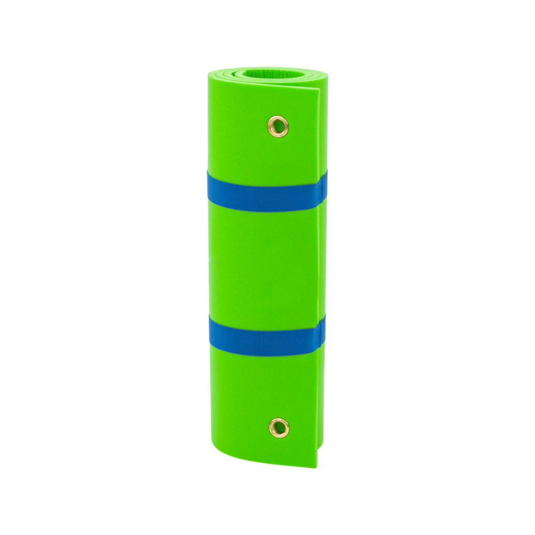 Χάρη στις δύο μεταλλικές οπές, είναι επίσης δυνατή η κρεμαστή αποθήκευση του. Με τα 2 λαστιχάκια, το χαλάκι μπορεί να τυλιχτεί για εξοικονόμηση χώρου.