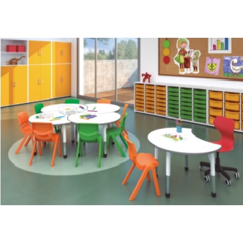 Παιδικό σχολικό τραπέζι σε στρογγυλεμένο σχήμα με 4 μεταλλικά πόδια.
