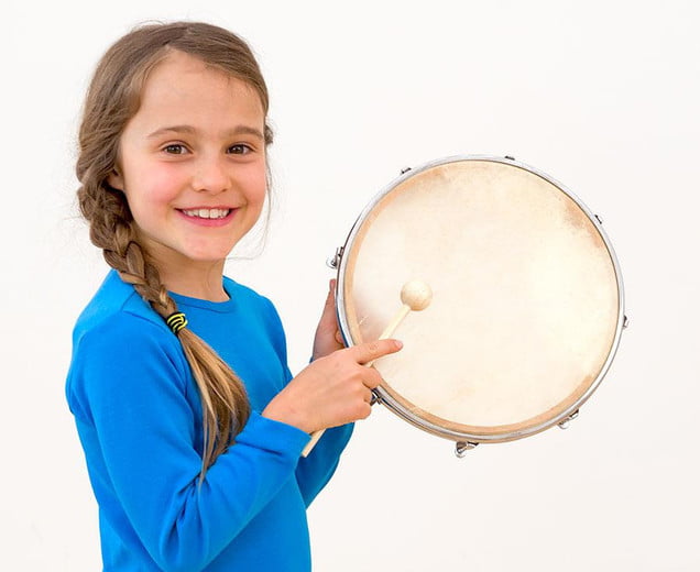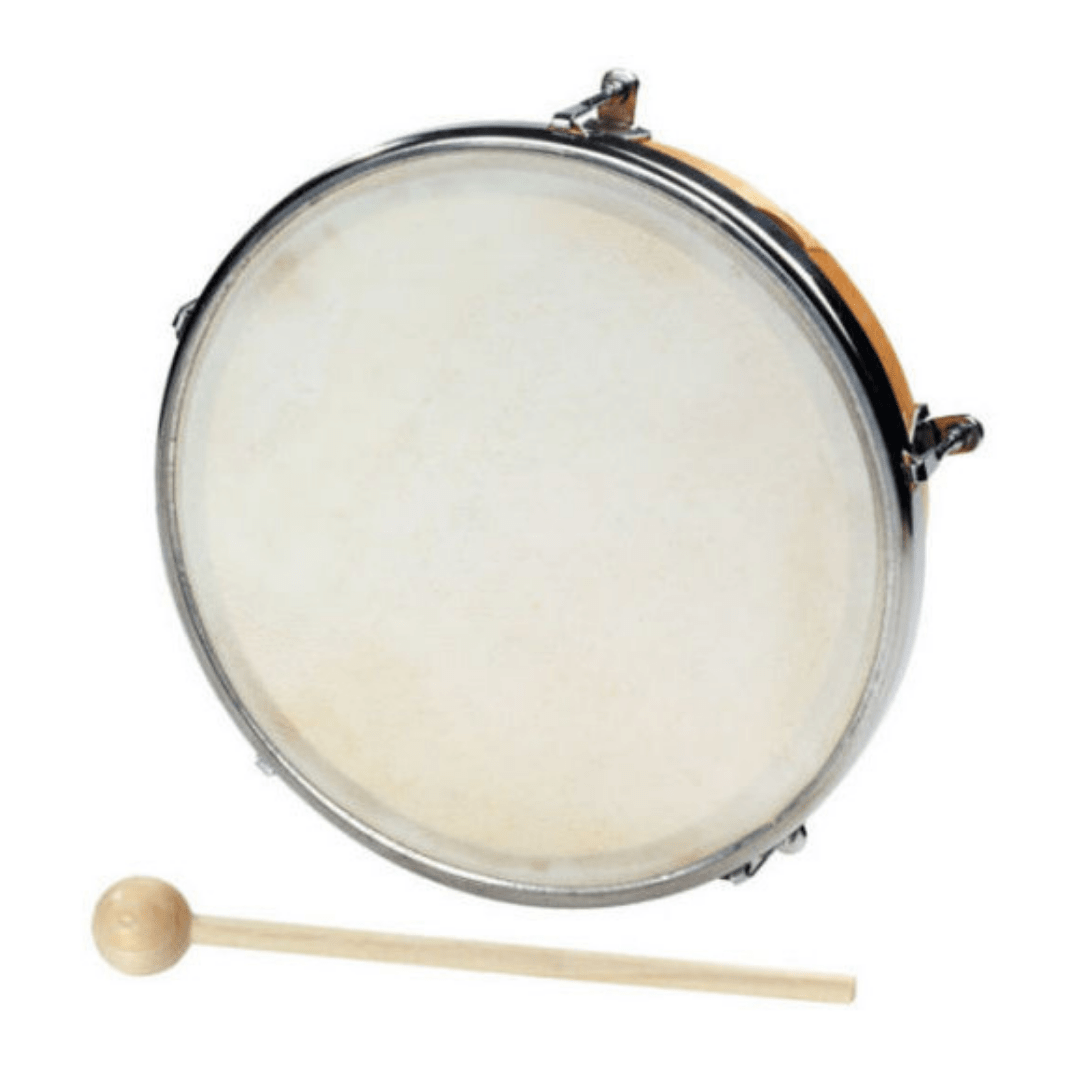 Τύμπανο 20cm από φυσικό δέρμα ρυθμιζόμενο με μπαγκέτα. Οι πλαστικές κεφαλές έχουν σταθερή ρύθμιση. Διάμετρος: 20cm