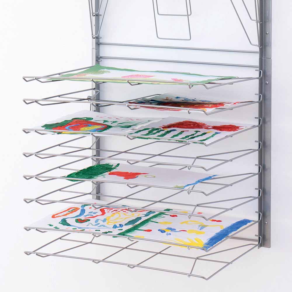 Μπορείτε να τοποθετήσετε τις ζωγραφιές τη μία δίπλα στην άλλη, ή την μία πάνω από την άλλη και να αφήσετε 16 ζωγραφιές να στεγνώσουν την ίδια στιγμή. Ιδανικό για μέγεθος χαρτιού μέχρι 45 εκατοστά.