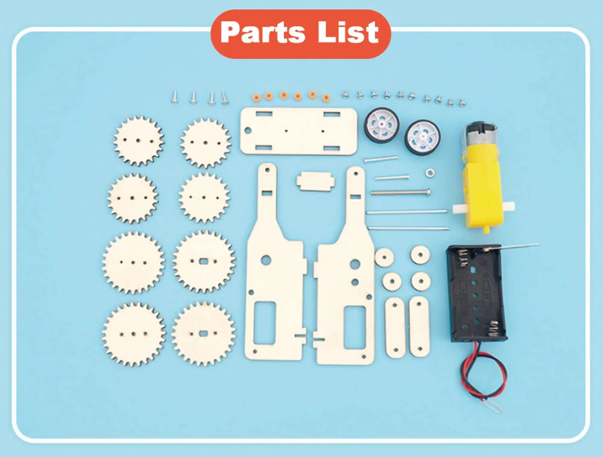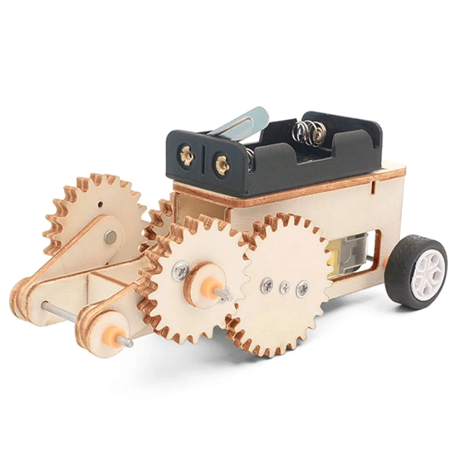 Κατασκευάστε ένα ξύλινο όχημα με γρανάζια που λειτουργεί με μπαταρία.