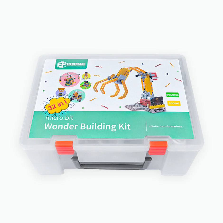 Το 32 in 1 micro:bit Wonder Building Kit επικεντρώνεται σε 32 πλέον δραστηριότητες και σας δίνει περισσότερες ευκαιρίες να δημιουργήσετε. Συσκευασμένο με διαφορετικούς ηλεκτρονικούς αισθητήρες, όπως ο αισθητήρας ακολουθίας γραμμής, το Sonar:bit (αισθητήρας απόστασης) και τον αισθητήρα στάθμης νερού, εμπλουτίζουν τα έργα σας με περισσότερη πρόκληση και διασκέδαση.