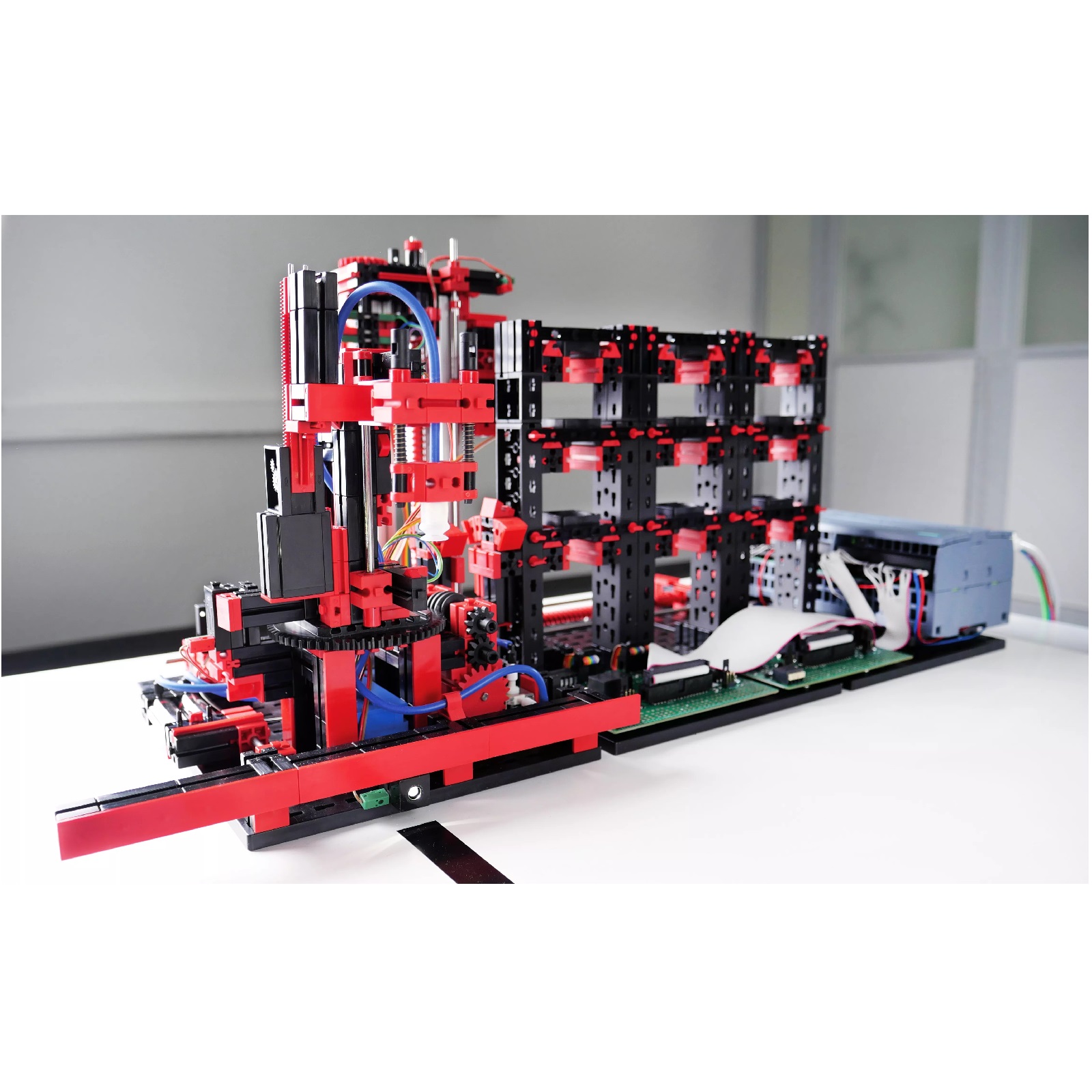 Agile Production Simulation 24V Η αποτελεσματικότητα, η ευκινησία και η ευελιξία είναι απαραίτητες για την κατασκευή σημερινών και μελλοντικών εργοστασίων. Η fischertechnik παρουσιάζει τώρα ένα μοντέλο εκπαίδευσης ενός τόσο ευέλικτου και αρθρωτού εργοστασίου – το Agile Production Simulation (προσομοίωση ευέλικτου εργοστασίου παραγωγής). Το εργοστάσιο αποτελείται από επιμέρους ενότητες όπως εισερχόμενα και εξερχόμενα αγαθά, αποθήκη υψηλών προδιαγραφών, σταθμό φρεζαρίσματος, σταθμό γεωτρήσεων, διασφάλιση ποιότητας με AI. Ένα σύστημα μεταφοράς χωρίς οδηγό μεταφέρει με ευκολία τα τεμάχια εργασίας μεταξύ των επιμέρους σταθμών και διασφαλίζει μια ευέλικτη διαδικασία παραγωγής που μπορεί να προσαρμοστεί στις απαιτήσεις των πελατών. Το εργοστάσιο μπορεί να επεκταθεί ώστε να περιλαμβάνει έναν κλίβανο, πρόσθετους σταθμούς γεώτρησης ή φρεζαρίσματος και επιπλέον συστήματα μεταφοράς χωρίς οδηγό. Κάθε κατεργαζόμενο τεμάχιο περιέχει μια ετικέτα NFC στην οποία αναγράφονται τα δεδομένα παραγωγής (χρώμα του τεμαχίου εργασίας, χρόνος παράδοσης, χρόνος αποθήκευσης και ανάκτησης, στάδια παραγωγής που πραγματοποιήθηκαν, έλεγχος ποιότητας). Τα διαφορετικά χρωματισμένα τεμάχια εργασίας (λευκό, κόκκινο, μπλε) περνούν από διαφορετικές διαδικασίες παραγωγής και έτσι περνούν από διαφορετικούς σταθμούς στο εργοστάσιο και έχουν διαφορετικούς χρόνους διεκπεραίωσης.Εργοστάσιο Παραγωγής