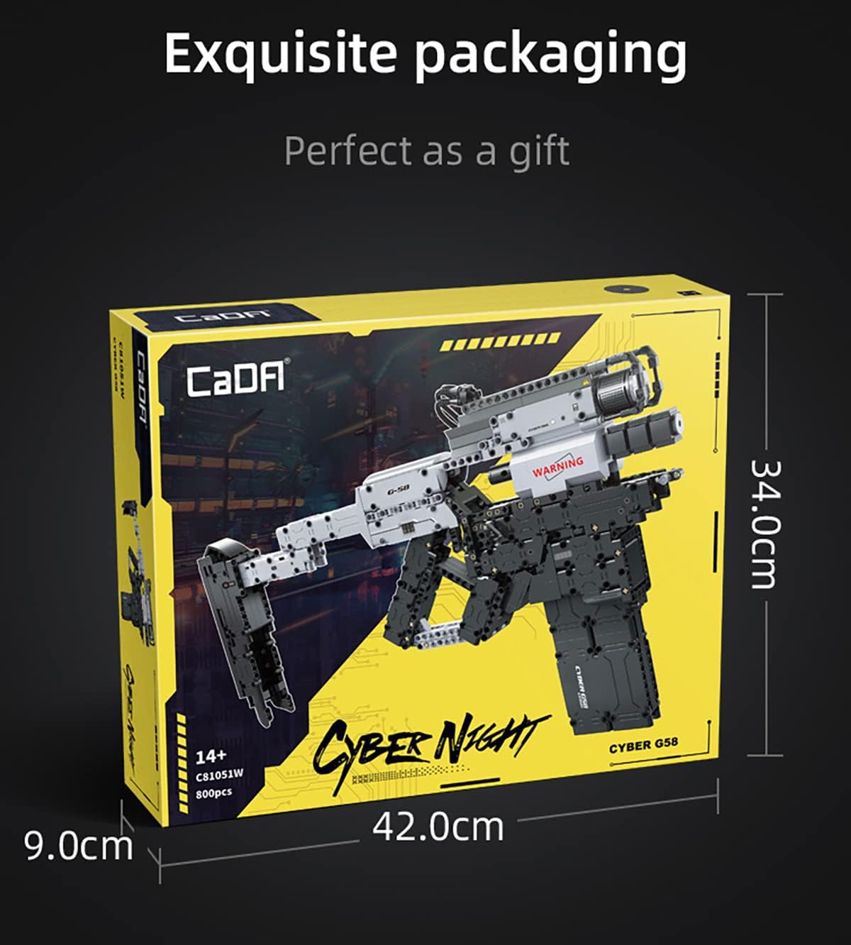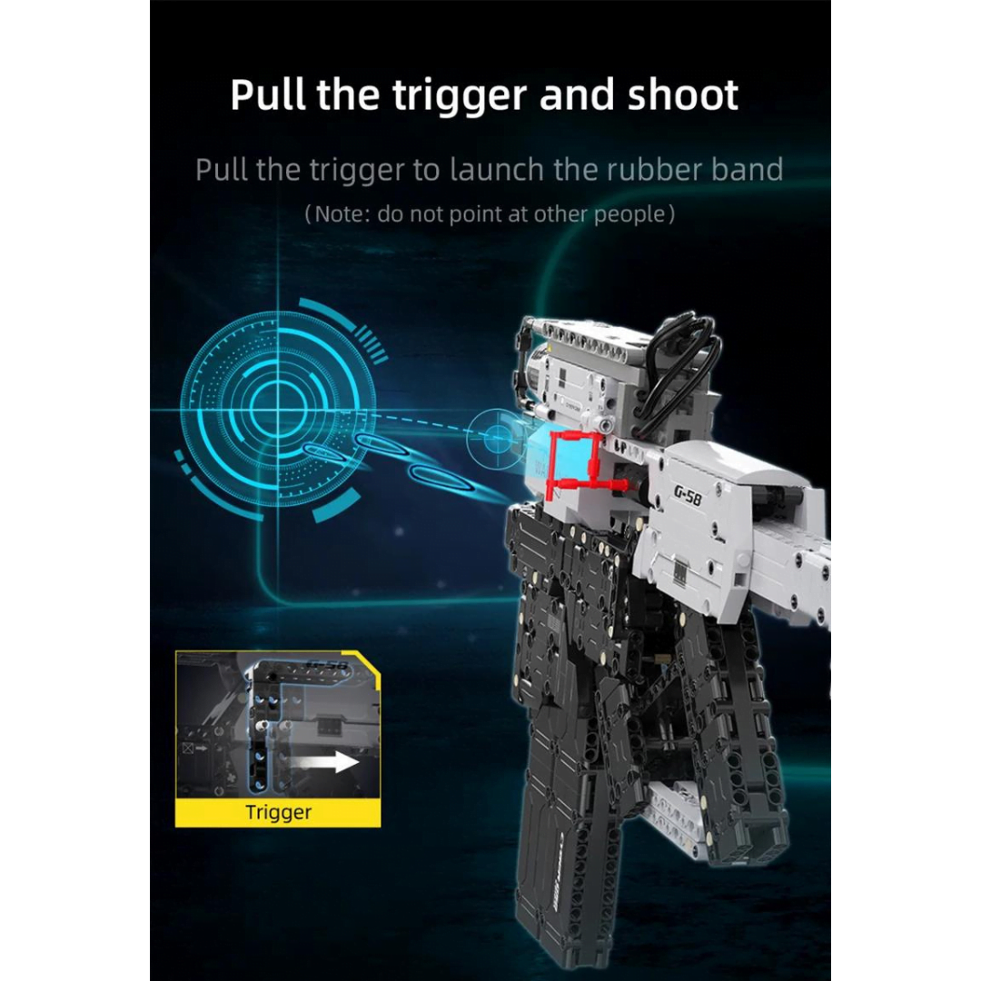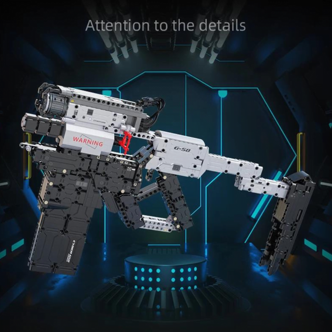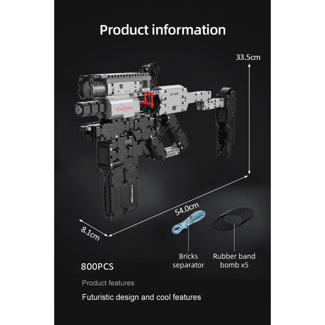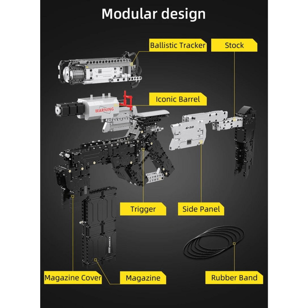 Cyber Night G58 Weapon CaDa Κατασκευάστε ένα φουτουριστικό και μοντέρνο όπλο βασισμένο στο παιχνίδι Cyber Night! Το μοντέλο πετάει λάστιχα και είναι συναρμολογούμενο.- Η όπλο G58 διαθέτει πολλές εξωτερικές λεπτομέρειες καθώς και απίθανα χαρακτηριστικά: βαλλιστικό ιχνηλάτη, κύλινδρο, πρότυπο διόπτρας, γεμιστήρα