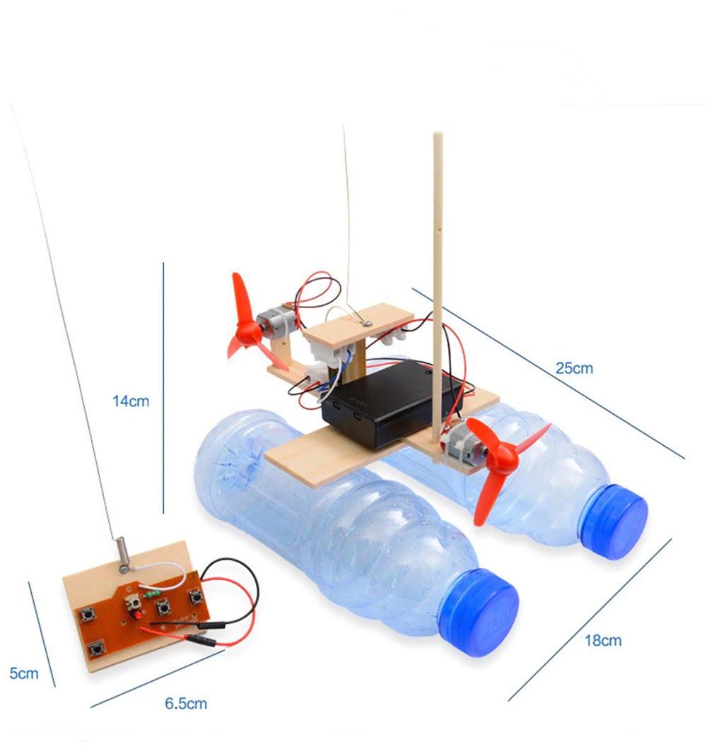 DIY Remote Control Wind Ship Model Τηλεκατευθυνόμενο καταμαράν Κατασκευάστε ένα τηλεκατευθυνόμενο σκάφος με πλαστικά μπουκάλια! Διαθέτει ασύρματο χειριστήριο για περίπου 30m απόσταση για ατελείωτο παιχνίδι! Το σκάφος πάει εμπρός, πίσω, αριστερά και δεξιά. Υλικό: ξύλο Μέγεθος σκάφους: 25 x 18 x 14cm Μέγεθος χειριστηρίου: 6.5 x 5cm Χρώμα: Δεν είναι βαμμένο-Μπορείτε να βάψετε όπως θέλετε τα σημεία του ξύλου Βάρος: περίπου 165g Ταχύτητα πλεύσης: 1 μέτρο σε περίπου 3 δευτερόλεπτα. [Σημειώσεις κατά τη χρήση]: Ο κύριος πίνακας ελέγχου δεν έχει αδιάβροχη λειτουργία. Μην το βουτήξετε όλο μέσα στο νερό. Μην το χρησιμοποιείτε τις βροχερές μέρες. Αυτό το μοντέλο μπορεί να χρησιμοποιηθεί μόνο σε ήρεμα νερά. (Συνιστάται να οδηγείτε σε πάρκα, πισίνες και λίμνες) Δεν περιέχονται: Δύο μπουκάλια και μπαταρίες Χρησιμοποιήστε τετράγωνα ή πολυγωνικά μπουκάλια, μην χρησιμοποιείτε στρογγυλά μπουκάλια). Περιέχονται οδηγίες συναρμολόγησης Το προϊόν αυτό δεν είναι έτοιμο, θα το κατασκευάσετε εσείς. Υπάρχουν όλα τα υλικά που χρειάζονται για να φτιάξετε την κατασκευή σας. Ηλικίες 12+