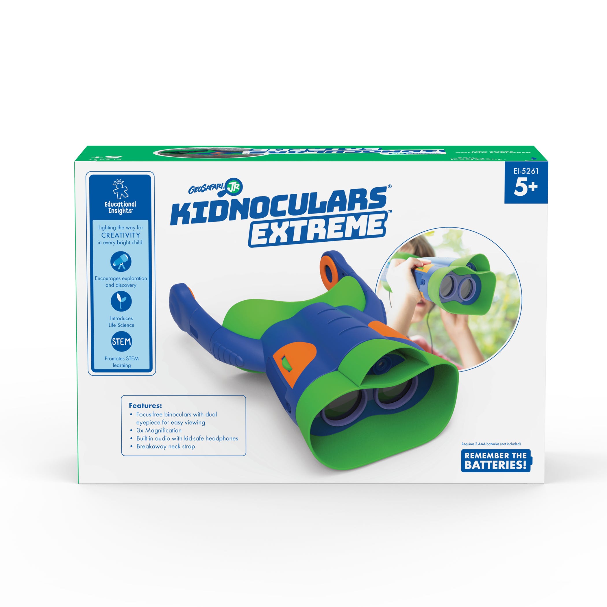 Εξερευνήστε την φύση και ακούστε ό,τι βλέπετε, με τα GeoSafari® Jr. Kidnoculars® Extreme™! Μεγεθύνετε τον κόσμο σας γύρω σας με αυτά τα πρωτότυπα κιάλια με μεγέθυνση 3x χωρίς εστίαση και ενισχύστε τους ήχους της φύσης με το ενσωματωμένο μικρόφωνο που διαθέτουν!