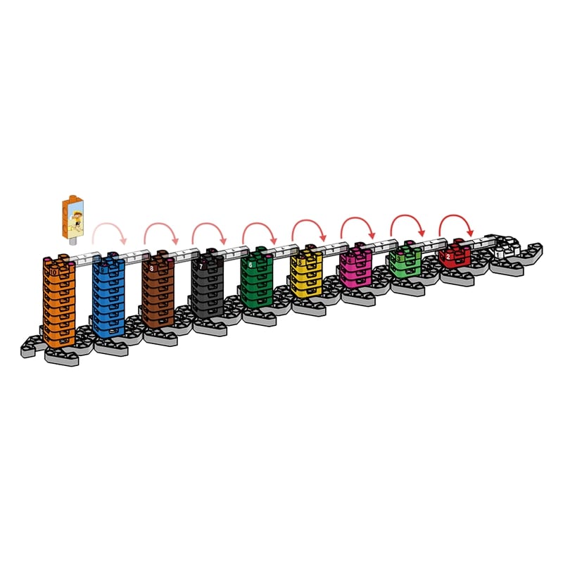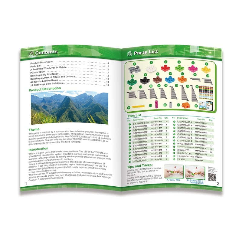 - 9 σκάλες, 10 πύργοι, + 10 βάσεις Χ + 24 πλαστικές κάρτες προκλήσεων.