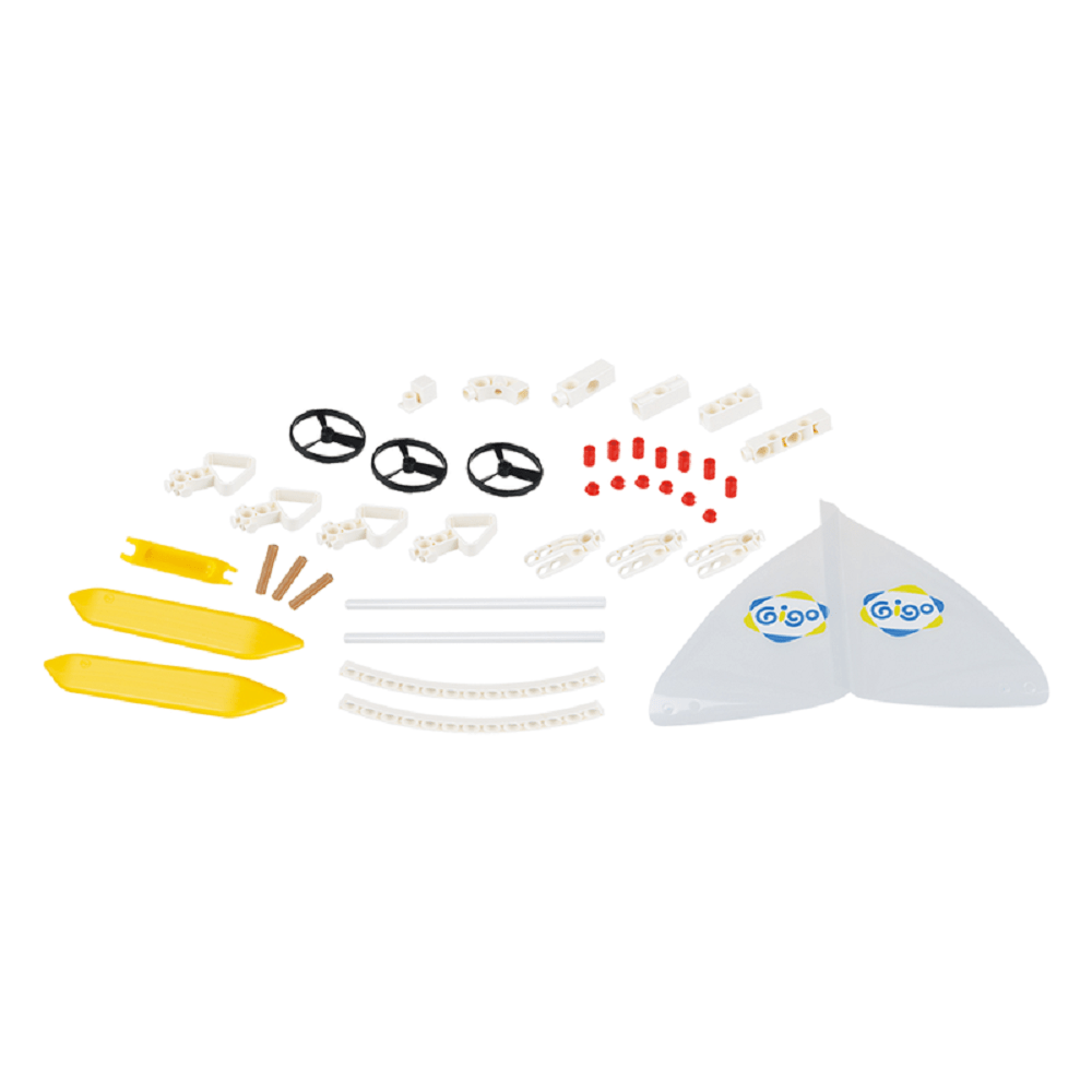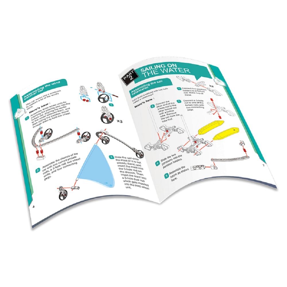 Ειδικά σχεδιασμένα πανιά, τροχαλίες χαμηλής τριβής, ωοειδείς καμπυλωτές ράβδοι, σωλήνες. Τα παιδιά θα κατανοήσουν την αρχή της κινητικής ενέργειας και της ιστιοπλοΐας. Δημιουργία 6 μοντέλων: αυτοκίνητο ιστιοπλοΐας, αυτοκίνητο αλεξίπτωτο, δύο είδη ιστιοπλοϊκών, δείκτης κατεύθυνσης ανέμου και μίνι ανεμόπτερο.