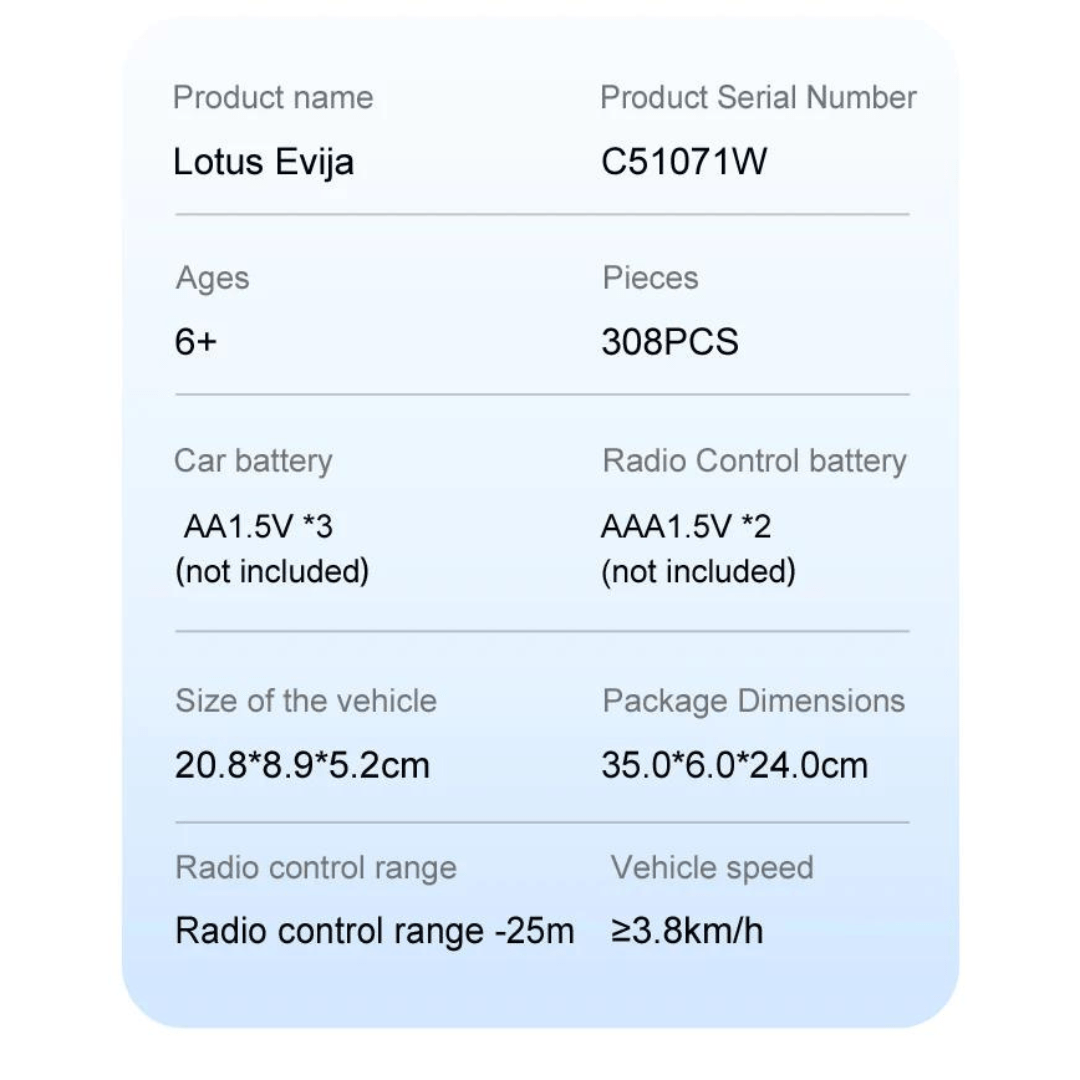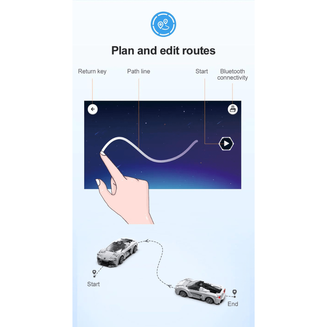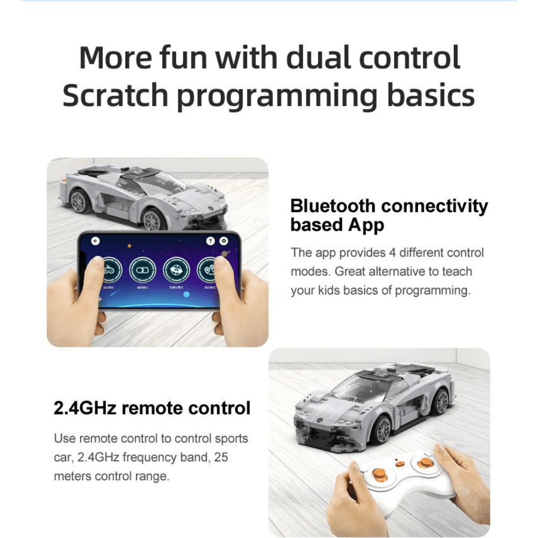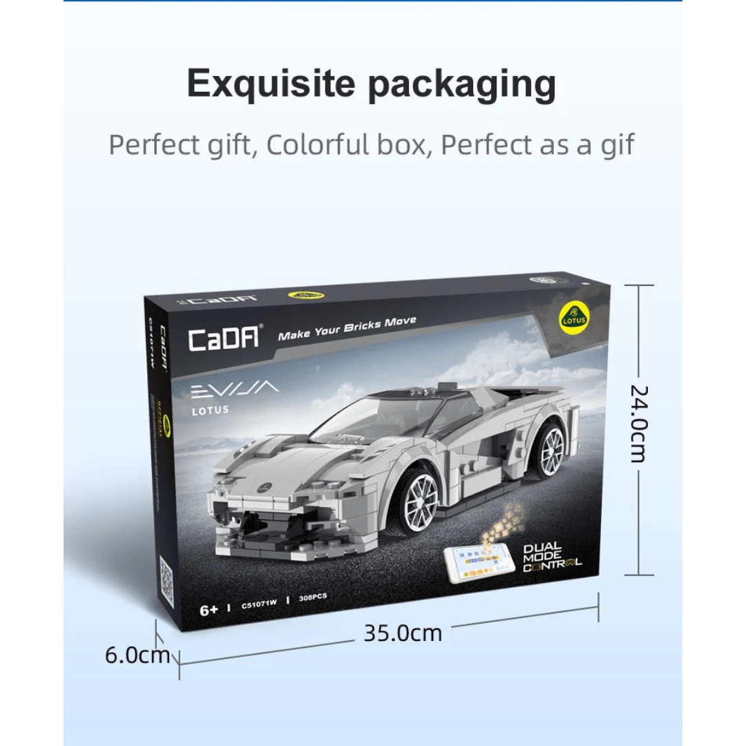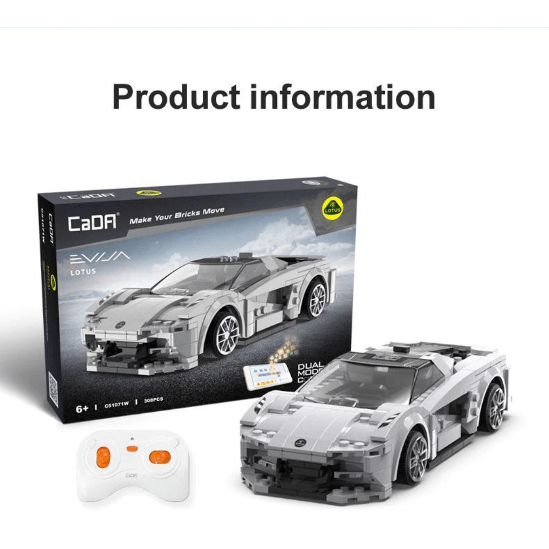 Lotus Evija – Dual Mode Control CaDa Γίνετε ένας ασταμάτητος οδηγός με το φανταστικό Lotus Evija καθώς μαθαίνετε να το προγραμματίζετε και να το τηλεκατευθύνετε! Εξαιρετικό για εισαγωγή στον προγραμματισμό και για όσα παιδιά λατρεύουν τα γρήγορα ηλεκτροκίνητα αυτοκίνητα! Ένα φανταστικό δώρο για τα παιδιά που τους δίνει την ευκαιρία να ταξιδέψουν στο κόσμο του προγραμματισμού και του STEM!- Λειτουργία διπλής λειτουργίας: με τηλεχειριστήριο 2.4G+Bluetooth APP, το οποίο μπορεί να ελέγξει τη λειτουργία κίνησης προς τα εμπρός, προς τα πίσω, της αριστερής στροφής, της δεξιάς στροφής κ.λπ.