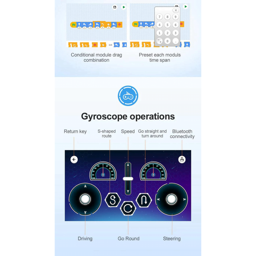 - Το παιχνίδι γραφικού προγραμματισμού Scratch και τα πολλά παιχνίδια, όπως ο έλεγχος APP για κινητά, μπορούν να πραγματοποιήσουν λειτουργία διεπαφής τηλεχειριστηρίου, γυροσκοπίου, σχεδιασμού διαδρομής κ.λπ.