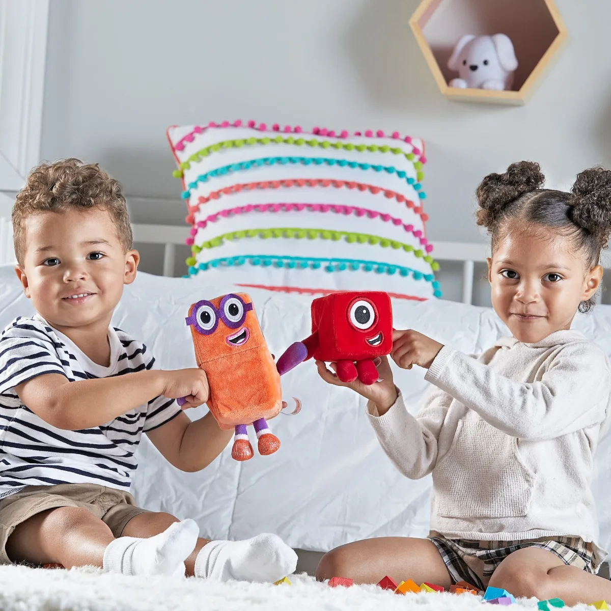 Κατασκευασμένα από μαλακό, απτικό ύφασμα και με κεντημένα χαρακτηριστικά, τα βελούδινα παιχνίδια Numberblock One και Two Playful Pals είναι έτοιμα για πολλές αγκαλιές!